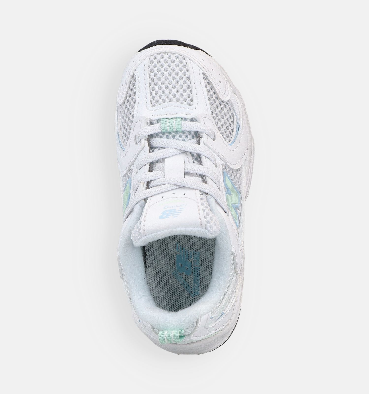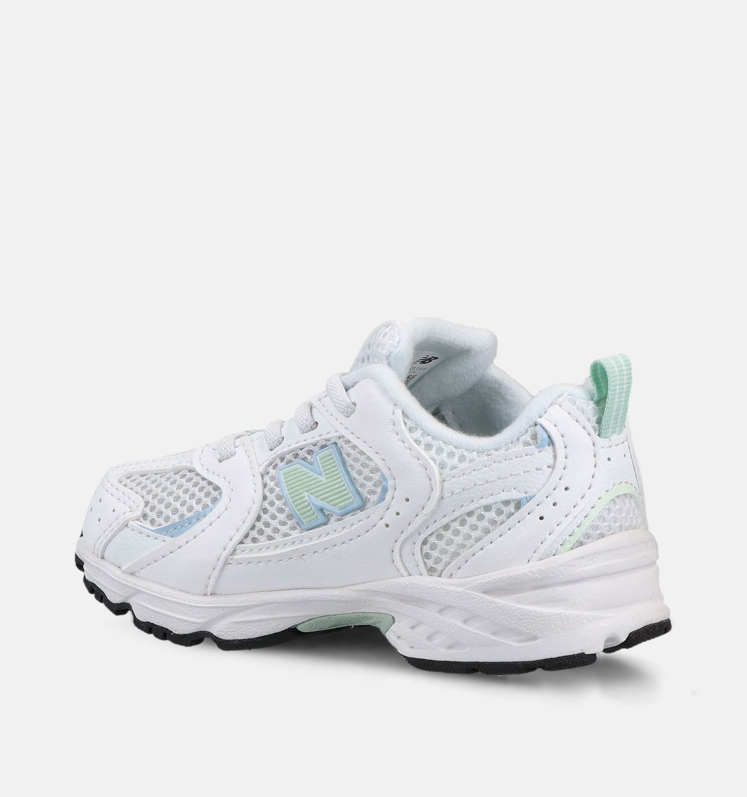 Deze New Balance sneakers hebben een stevige elastieksluiting. Dat houdt deze witte meisjessneakers goed aan de voeten tijdens het stappen, rennen, springen en sporten! De semi-soepele en slijtvaste zolen laten de voeten bovendien mooi afrollen tijdens het wandelen. Dat is belangrijk voor stabiliteit en evenwicht, maar zorgt er ook voor dat meisjes minder snel vermoeide voeten zullen hebben.
