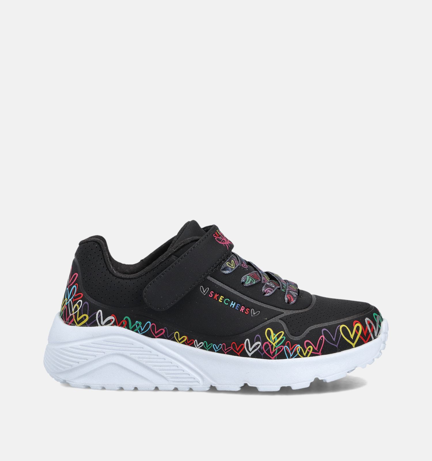 Skechers sneakers worden de nieuwe favoriete schoenen van jouw mini-me! Met deze zwarte Skechers sneakers aan de voeten, voel jij je gewoon de coolste van de school. Het trendy design van deze Skechers Uno voor kinderen is uiteraard leuk, maar wat echt opvalt aan deze zwarte Skechers voor meisjes is het comfort.