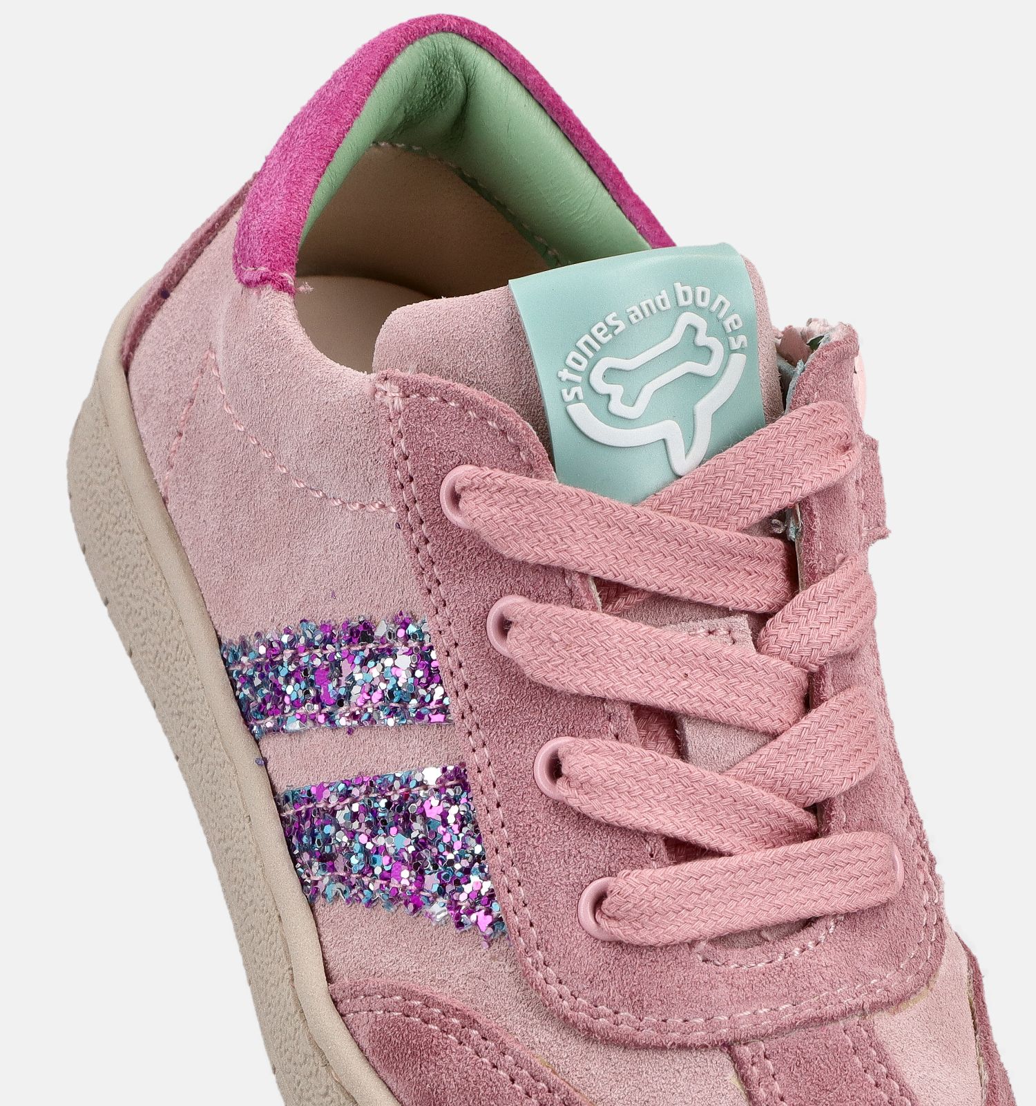 Het Belgisch kinderschoenenmerk STONES and BONES maakt al bijna zeventig jaar de allermooiste meisjesschoenen. Met zoveel jaar op de teller, weet STONES and BONES ook perfect wat groeiende kindervoeten nodig hebben. Deze roze sneakers bewijzen dat! Deze meisjessneakers hebben een licht verstevigd hielstuk voor extra steun, een semi-soepele zool voor de beste voetafwikkeling, een makkelijke rits & vetersluiting en kunnen tegen een stootje. Deze sneakers zullen jouw kleine meid ongezien stap-, spring- en speelcomfort bezorgen, daar moet je niet aan twijfelen!