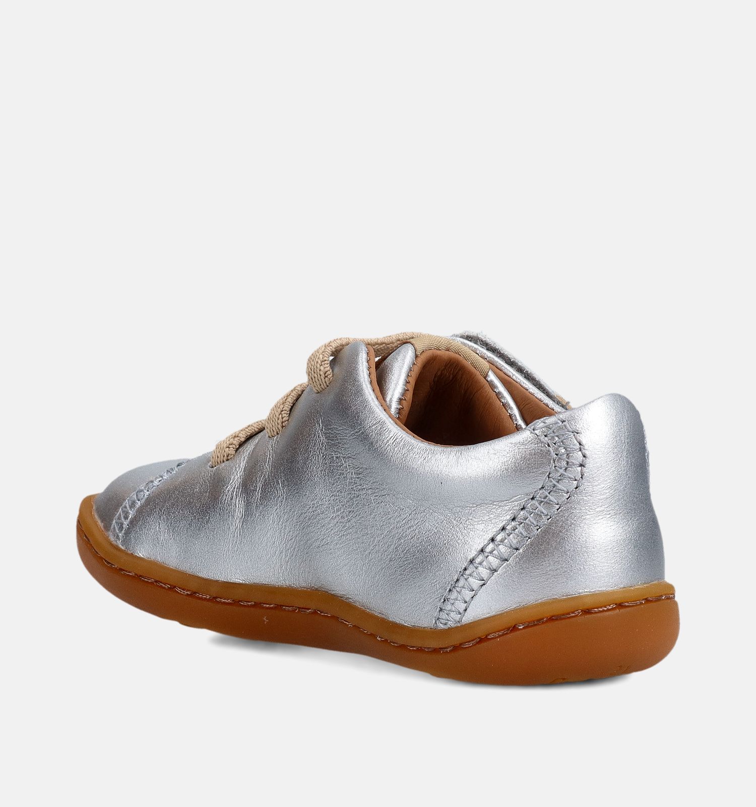 Dit zilveren model van Camper is soepel en heeft flexibele zolen, zodat de kindervoeten zelf actief aan het werk blijven. Zo stimuleren deze eerste stapschoentjes een gezonde voetafrol en de natuurlijke motoriek. Ook het lichte gewicht van deze Camper elastiek & velcroschoenen valt meteen op. Dat helpt jouw kind het evenwicht te bewaren.