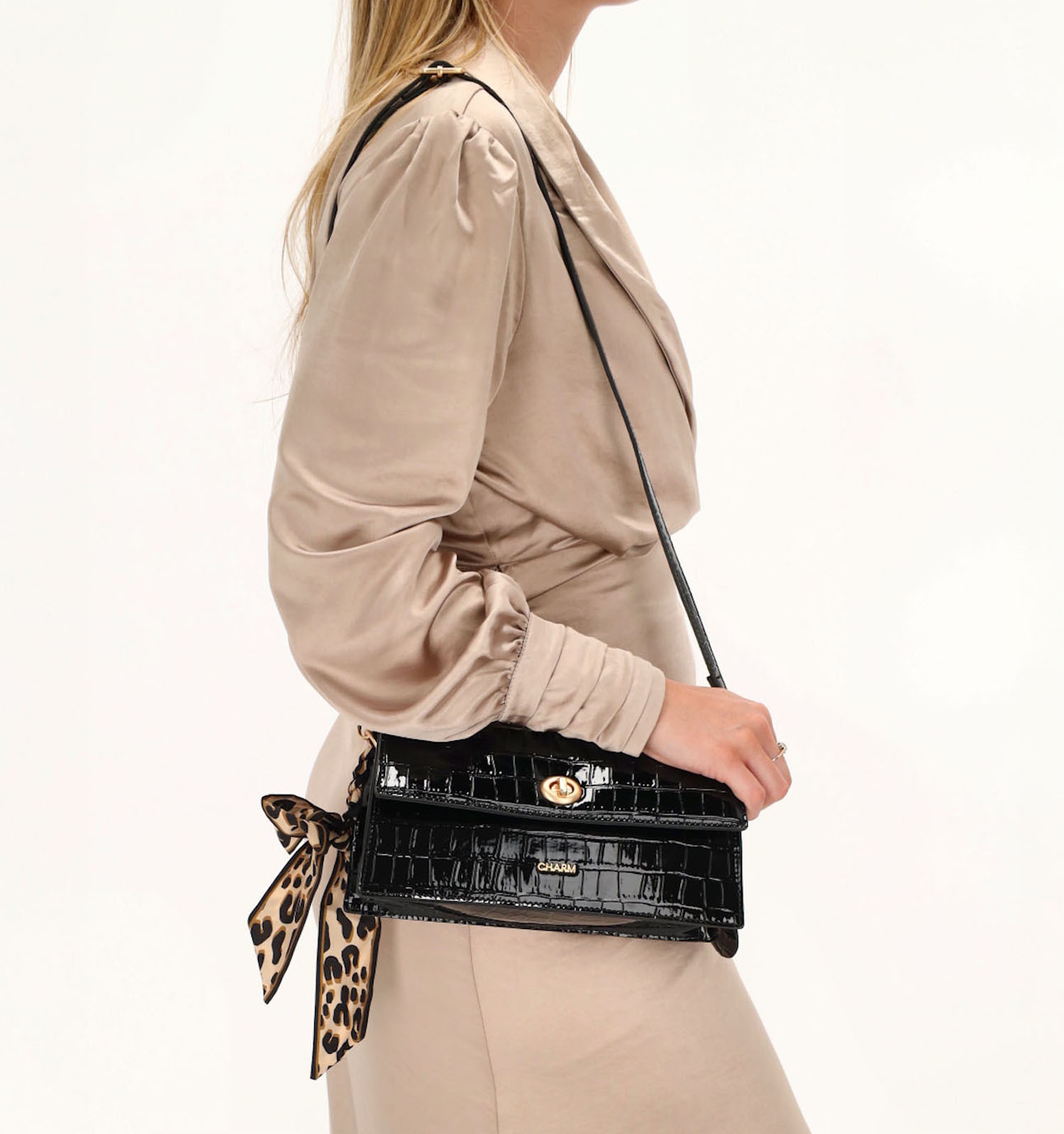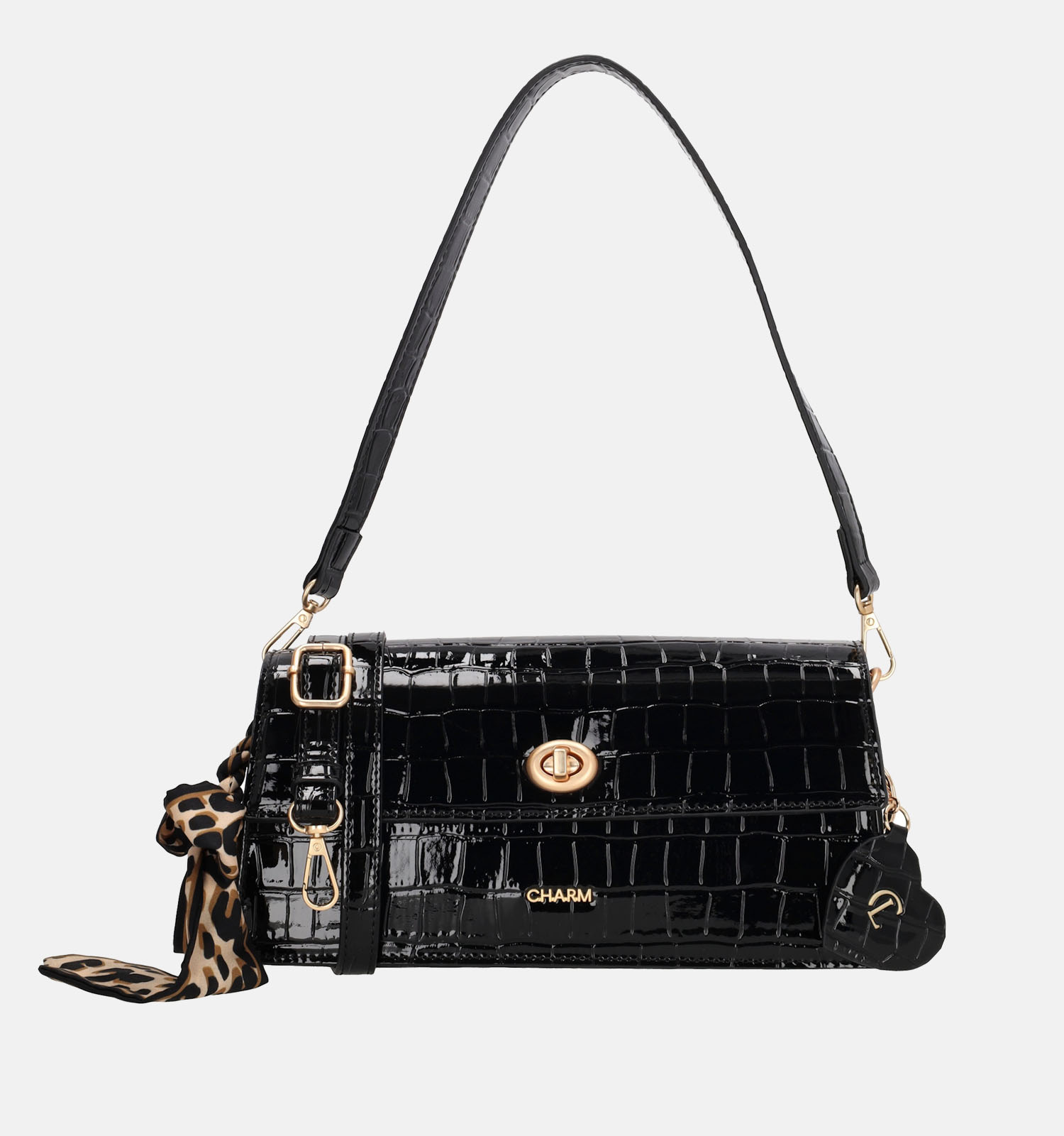 Deze prachtige zwarte schoudertas van Charm London is een echte must-have. In tegenstelling tot een handtas, heeft een schoudertas één of twee langere hengsels. Zo hang je schoudertassen zoals deze makkelijk over jouw schouder en hoef je ze dus niet in de hand te dragen. De schoudertas is en blijft een trendy en onmisbaar accessoire!