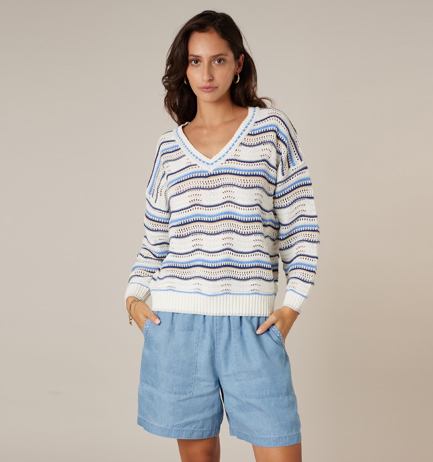 Deeluxe Original Melvina Witte/Blauwe Trui Gestreept