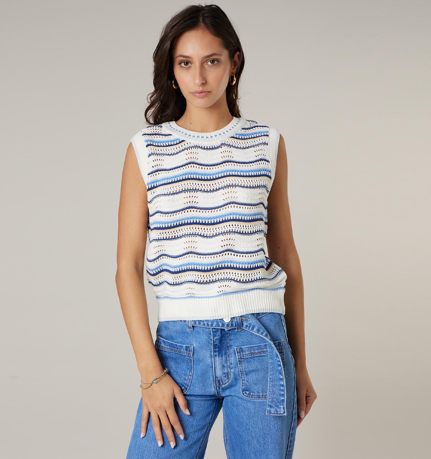 Trendalert! Gilets zonder mouwen, zoals dit blauwe exemplaar van Deeluxe Original, worden massaal gespot bij fashion influencers. Style het zoals de it-girls: als top, met een bandeau of een tube topje subtiel eronder verstopt. In combinatie met een blouse met lange mouwen of een T-shirt zie je natuurlijk ook vaak voorbij komen! Dat maakt het wel wat klassieker, al geeft de casual-chic look van deze mouwloze gilet van Deeluxe Original toch iets extra. Het is zo'n item waarmee je er moeiteloos goed uitziet, zelfs zonder veel denkwerk. Trendy, makkelijk én leuk!