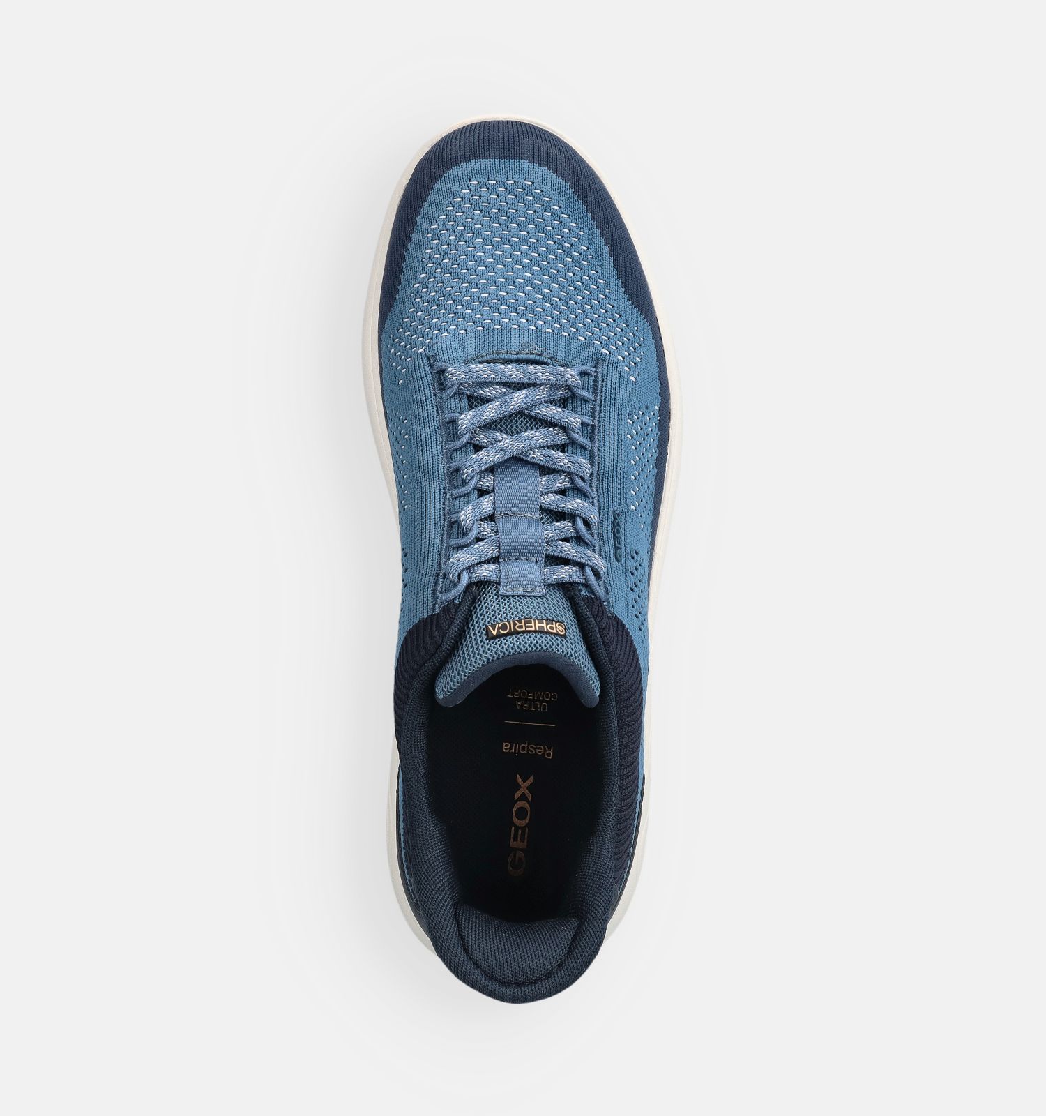 Geox is één van de favoriete schoenenmerken van alle heren die zowel comfort als een moderne look belangrijk vinden. En wij snappen honderd procent waarom! Deze blauwe sneakers voor heren hebben de gepatenteerde Geox-zolen, waardoor zweet wordt afgevoerd via de microgaatjes in de buitenzolen. Zo blijven jouw voeten droog, de hele dag lang. Door deze ademende herensneakers van Geox ervaar je ultiem comfort!