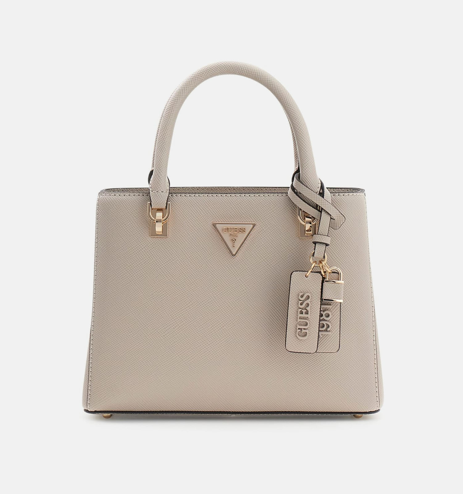Een handtas moet vooral twee zaken zijn: functioneel en esthetisch mooi. Guess toont jou graag dit schoolvoorbeeld. Deze beige handtas is, door de grootte van 32 cm op 12 cm op 21 cm, een eerder ruim exemplaar. Perfect voor iedereen die graag goed voorbereid de deur uit gaat! Er is plek voor alle extraatjes die je maar wil meenemen, zoals bv. een zonnebril, wat snacks en/of een kleine paraplu.