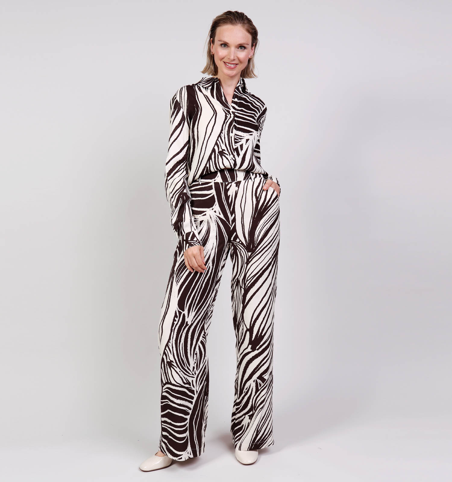 Maak je look compleet met minimalistische, witte sneakers of je favoriete pumps.