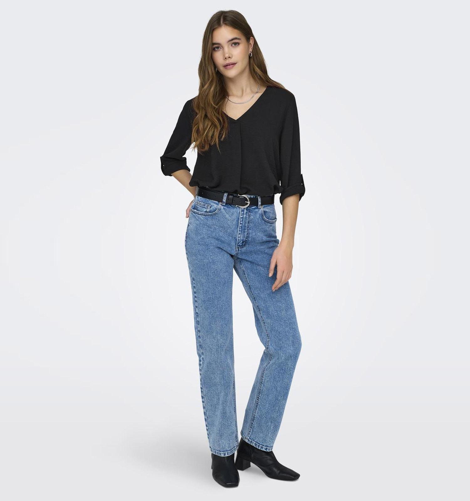 JDY Divya Life Zwarte Blouse met Halflange Mouwen