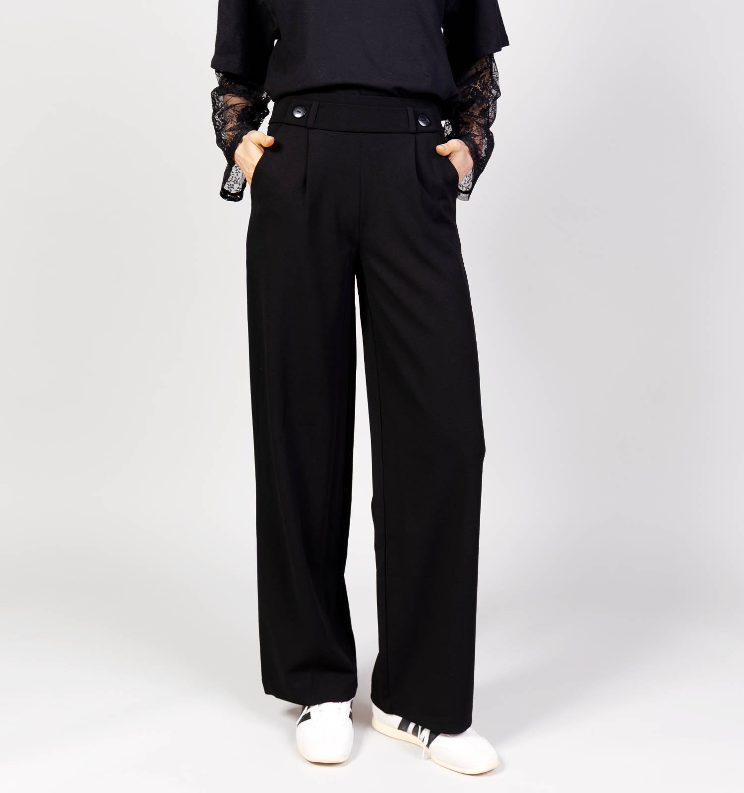 JDY weet wat de moderne vrouw belangrijk vindt in een broek: ultiem comfort, topkwaliteit, een mooi silhouet en een moeiteloos stijlvolle look. Dat merk je meteen door dit model! Deze zwarte broek scoort moeiteloos een tien op tien op al die vlakken.