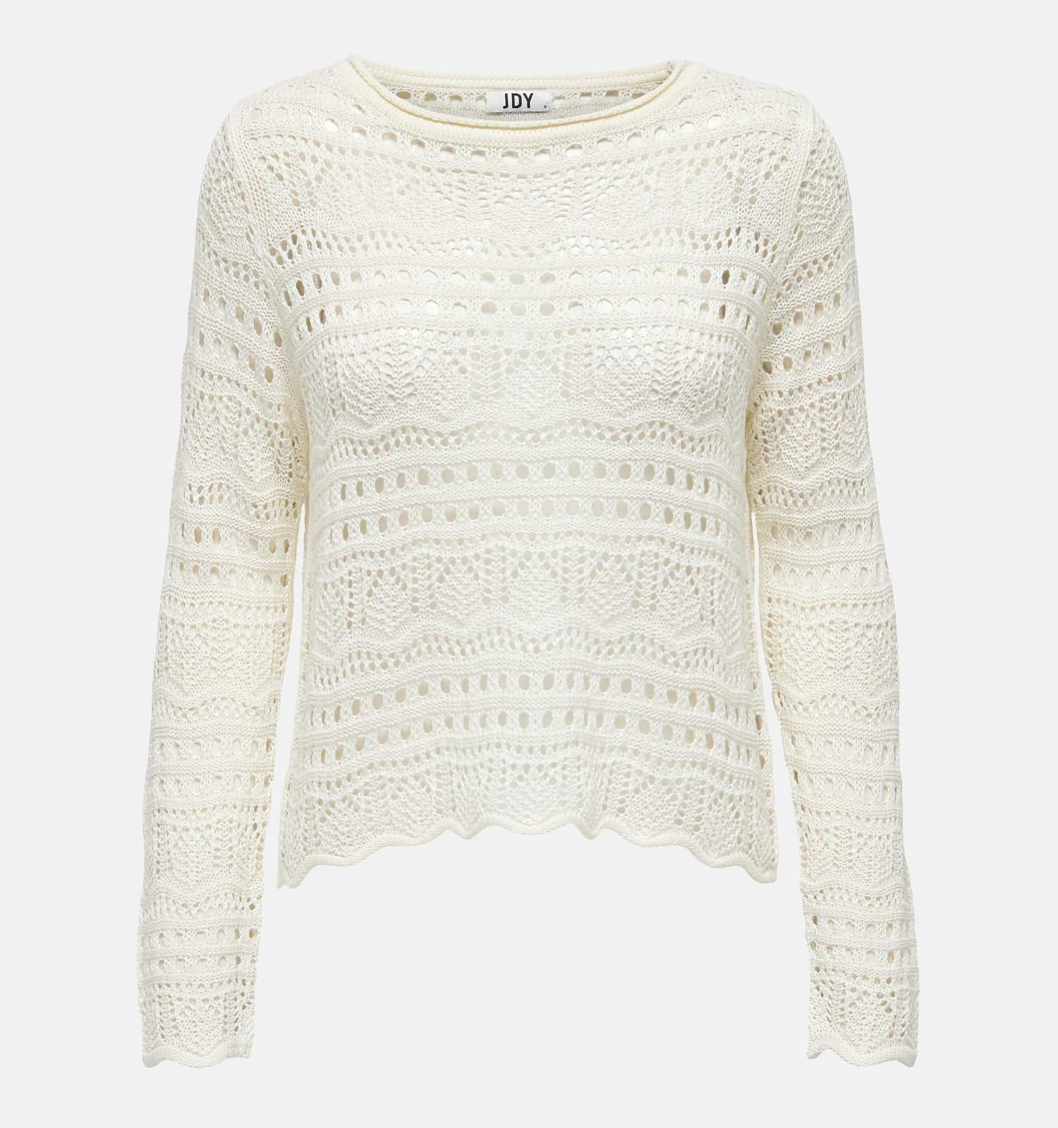 Knitwear is ideaal om lagen te creëren in jouw outfit! Je kunt deze zachte trui van JDY rond je schouders of taille knopen wanneer je hem (nog) niet nodig hebt, en hij is binnen handbereik wanneer je het te koud krijgt. De monochrome witte kleur maakt het samenstellen van een leuke outfit makkelijk. Zo past deze leuke JDY trui bij alle (jeans)broeken en rokken!