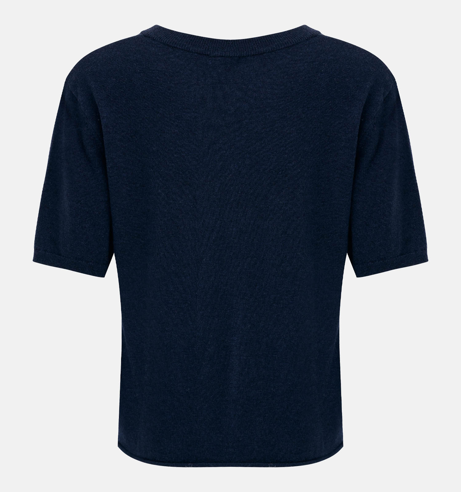 Deze damestrui in de kleur blauw heeft een ronde hals en halflange mouwen.