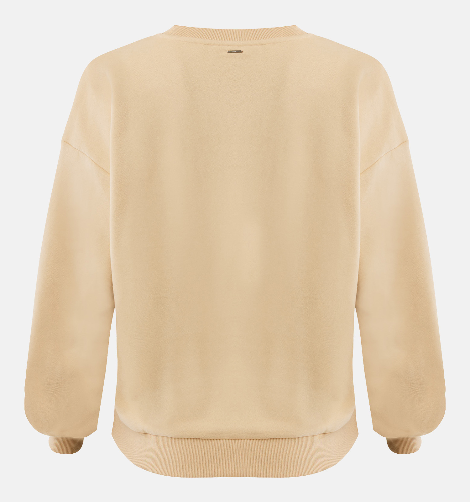 Deze damestrui in de kleur beige heeft een ronde hals en lange mouwen.