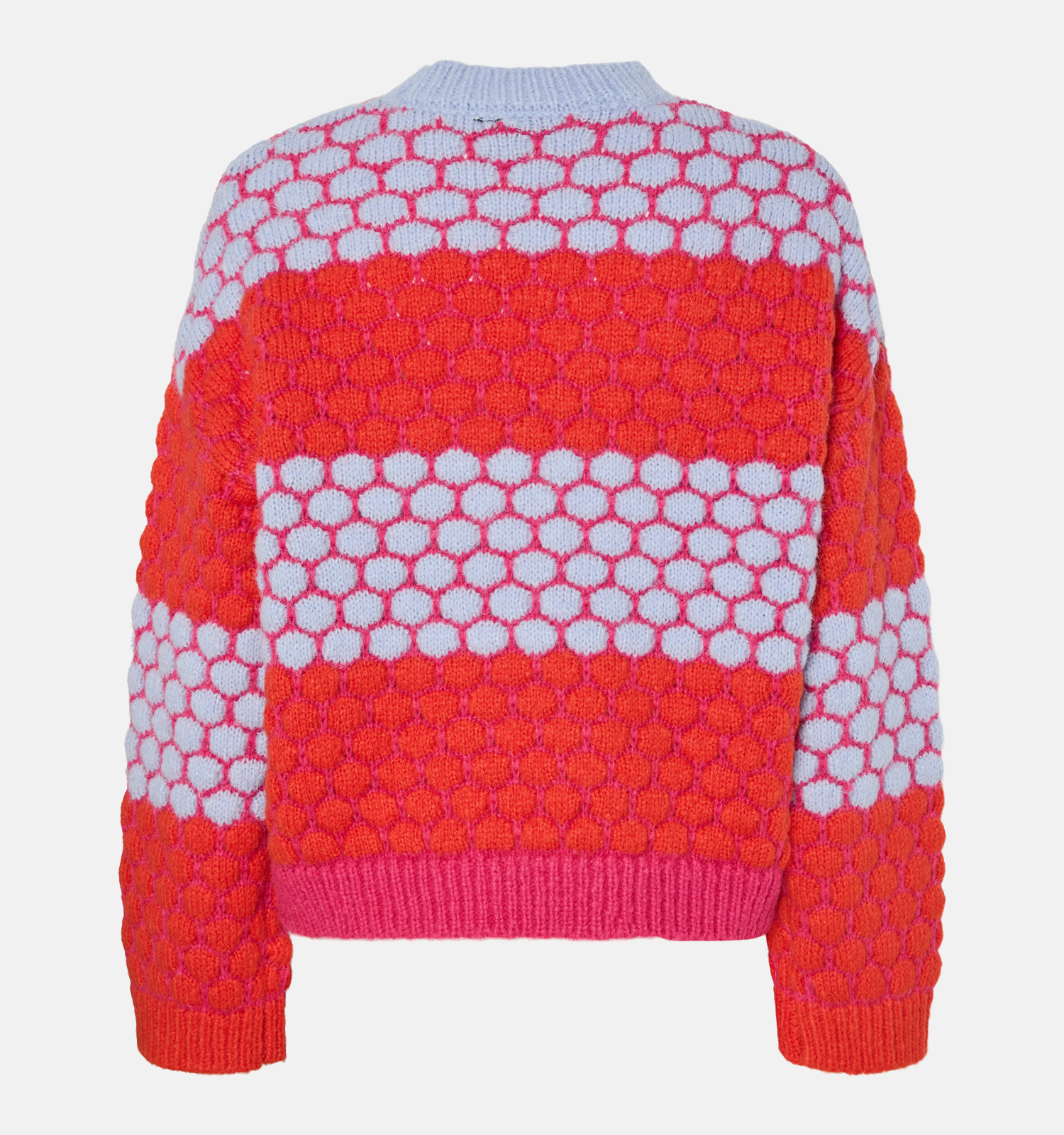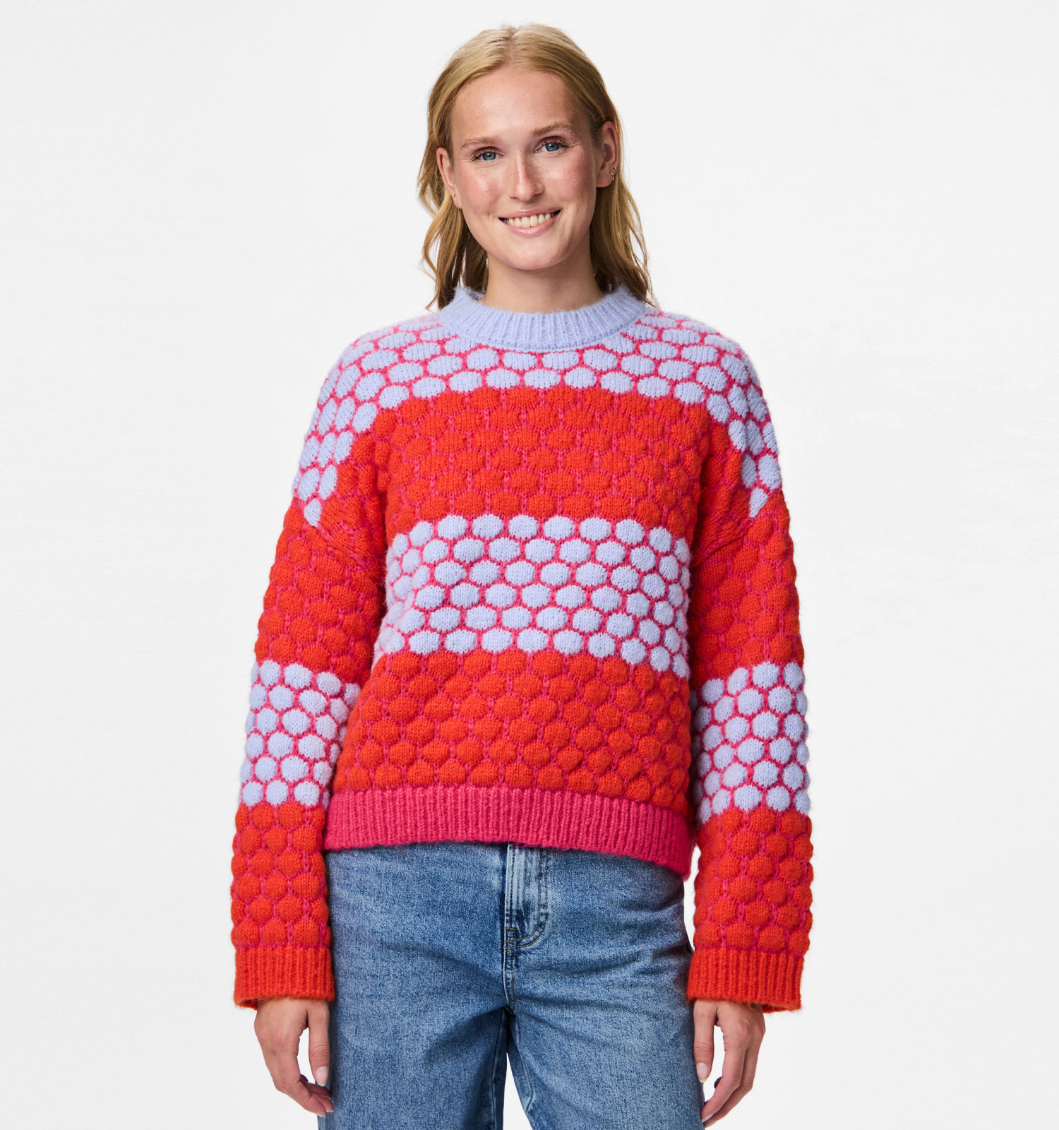 Deze Pieces trui met strepenprint is de perfecte aanvulling voor jouw kleerkast. Style deze zachte trui met jouw favoriete jeansbroek of jeansshort voor een stijlvolle, French-chic look. Deze rode trui staat ook mooi op een geklede(re) broek, wijde broek of chino, al raden wij wel aan om broeken met een (drukke) print te vermijden. Deze Pieces trui komt het best tot zijn recht in combinatie met monochrome onderstukken. Laat deze rode trui met print de eyecatcher zijn!