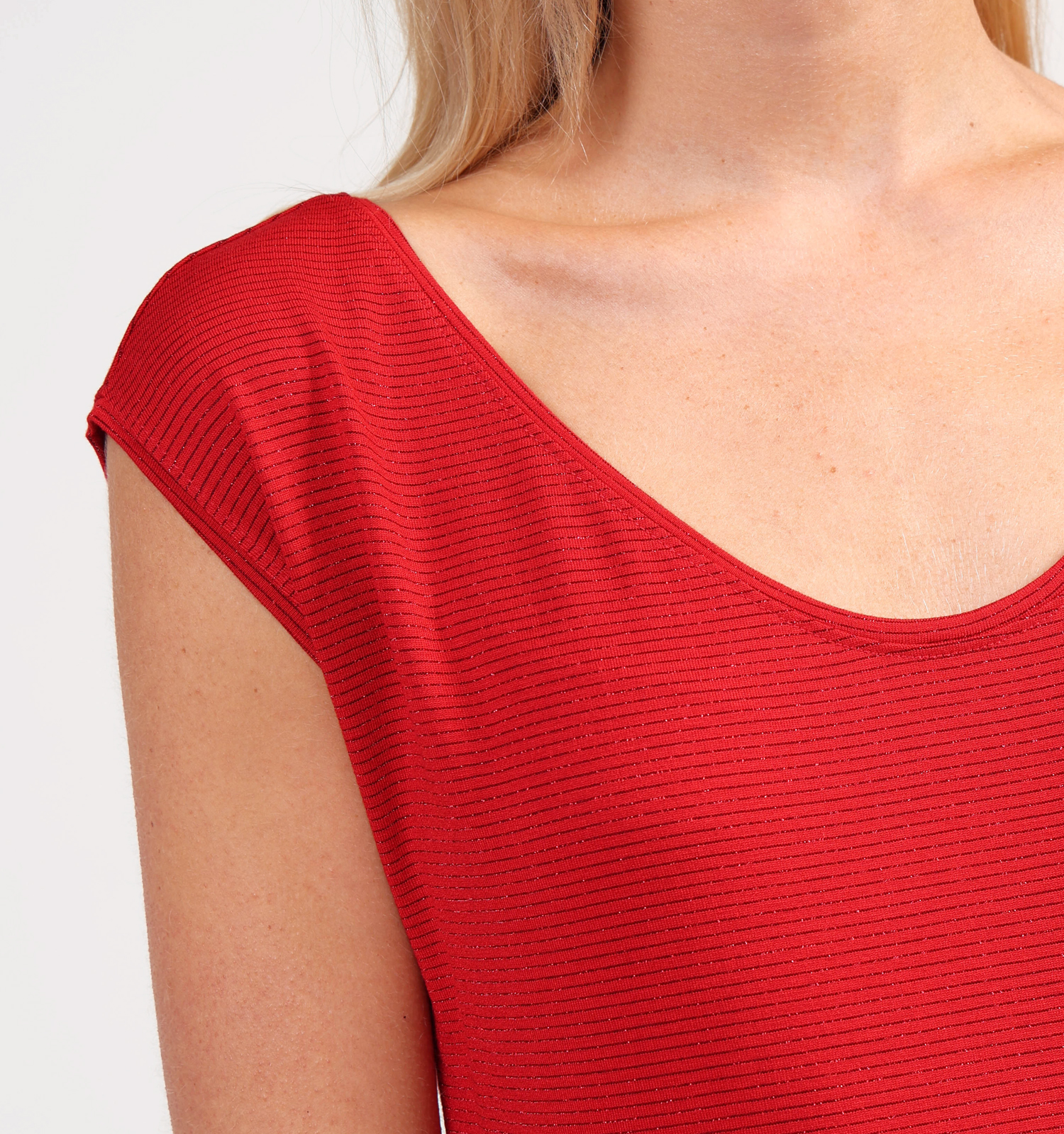 Deze T-shirt heeft korte mouwen, waardoor je het hele jaar door van dit fijne exemplaar kan genieten! Ook interessant om te weten: dit Pieces-model valt recht qua pasvorm. Het staat dus ieder lichaamstype prachtig. Deze rode dames-T-shirt heeft een mooie v-hals die je eventueel prachtig kan accentueren met je favoriete kettingen.