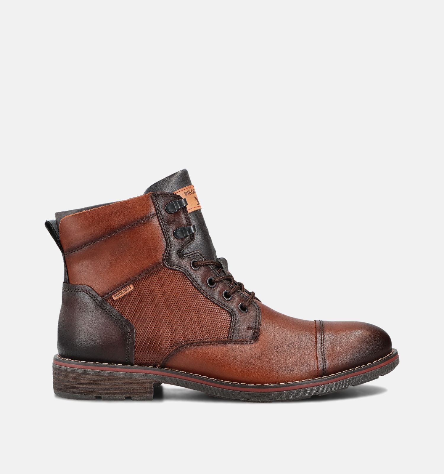 Deze veterlaars van Pikolinos is vervaardigd uit leer en binnenin afgewerkt in stof.