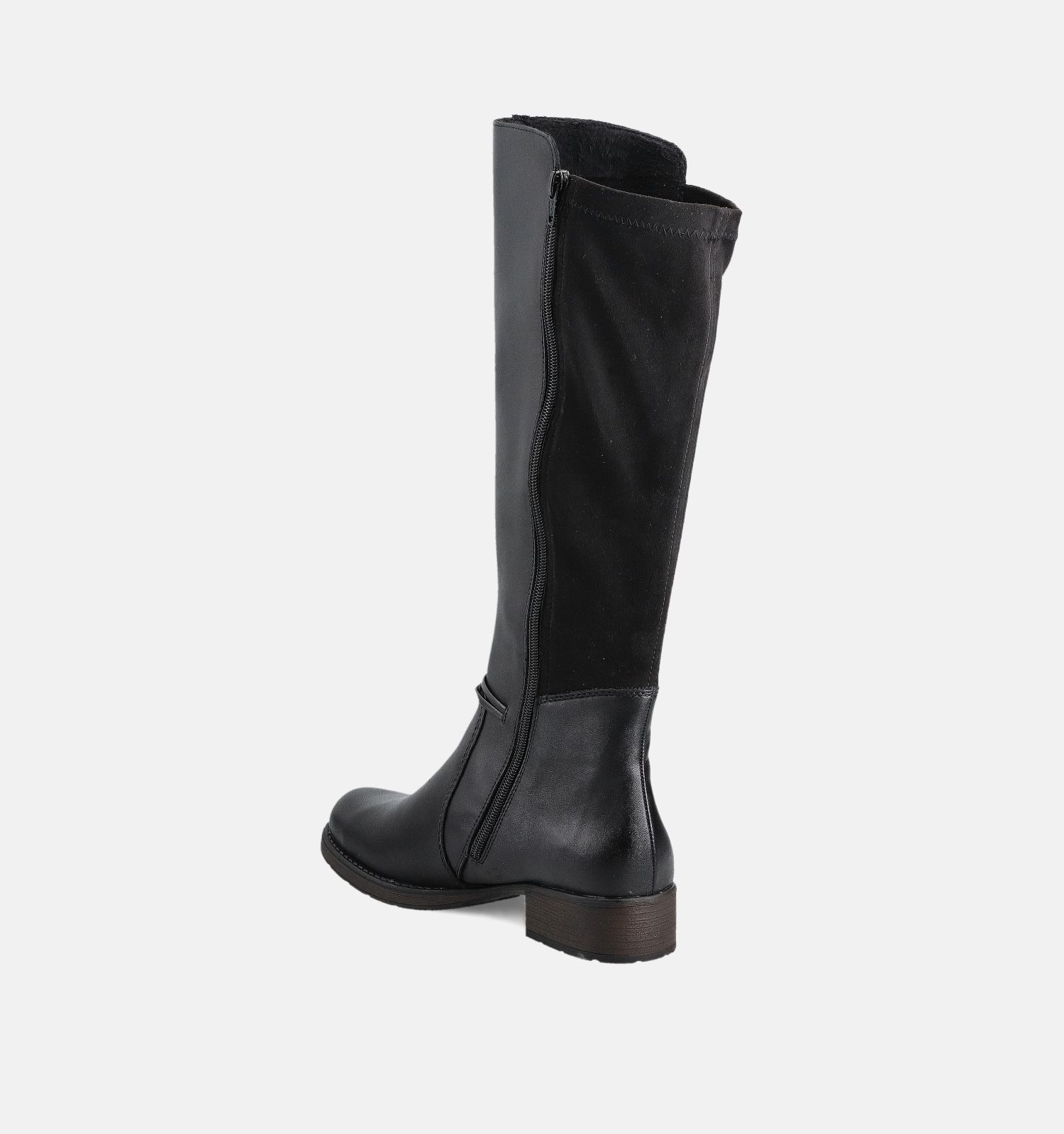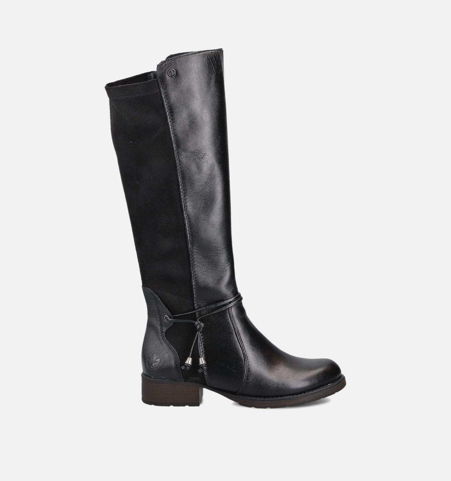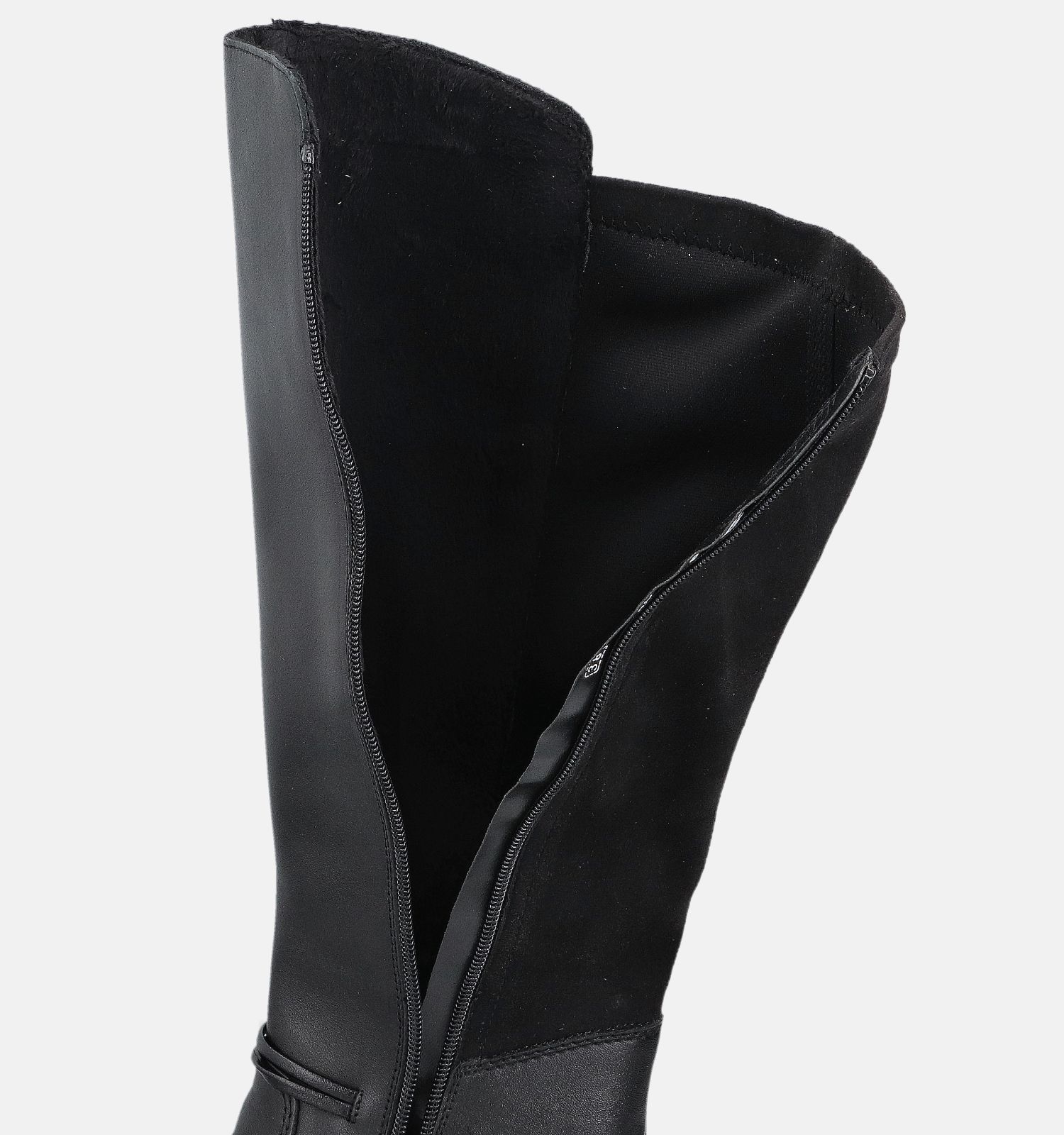 Deze laarzen in de kleur zwart zijn vervaardigd uit sterk leer, met zacht stof aan de binnenkant. Deze materialen hebben een extra licht gewicht, een antidotum tegen dat herkenbare gevoel dat jouw voeten na een tijd zwaar beginnen aan te voelen. De ergonomische pasvorm van deze Rieker dameslaarzen houdt ook rekening met het feit dat alle voeten licht opzwellen tegen het einde van de dag. Zo ervaar je de hele dag door optimaal comfort! Deze Rieker laarzen voor dames hebben een ritssluiting.