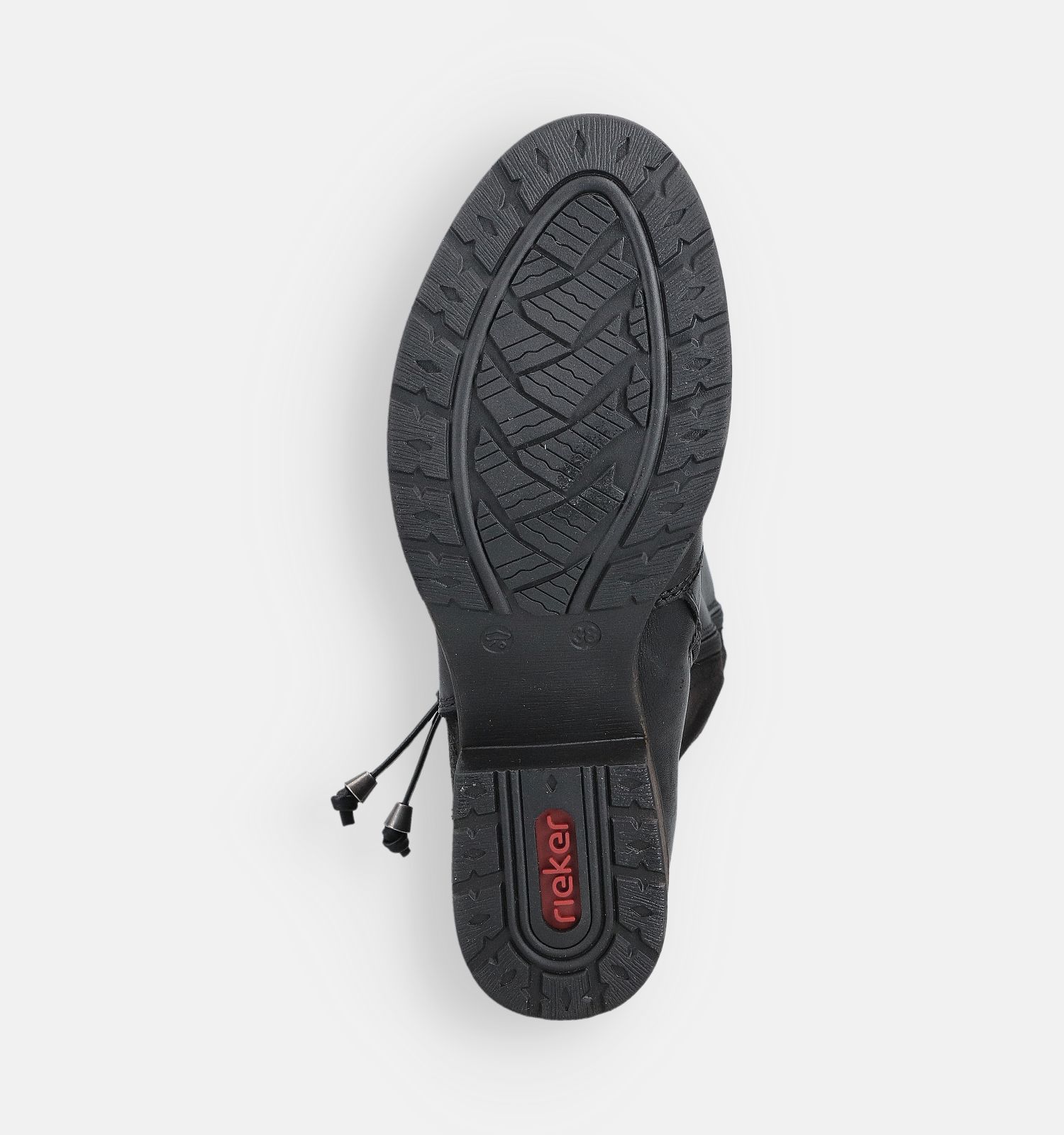 Deze Rieker laarzen voor dames zijn anti-stress schoenen. Dit betekent dat deze zwarte laarzen optimaal comfort bieden, de hele dag door. De schokdempende schoenzolen verkleinen de wandelimpact en verspreiden de druk over de hele zool heen.