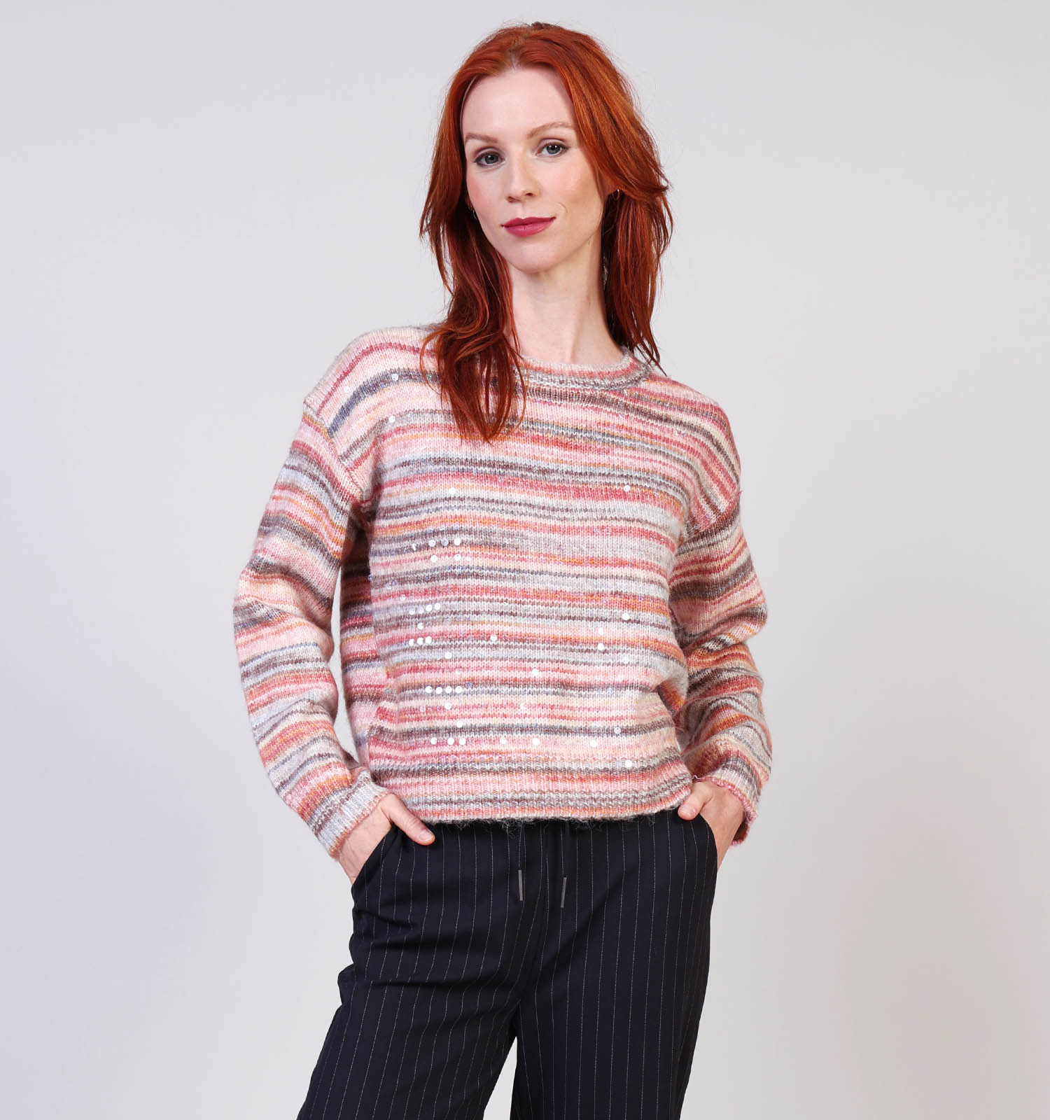 Deze Rue Mazarine trui in de kleur roze heeft een ronde hals en lange mouwen.