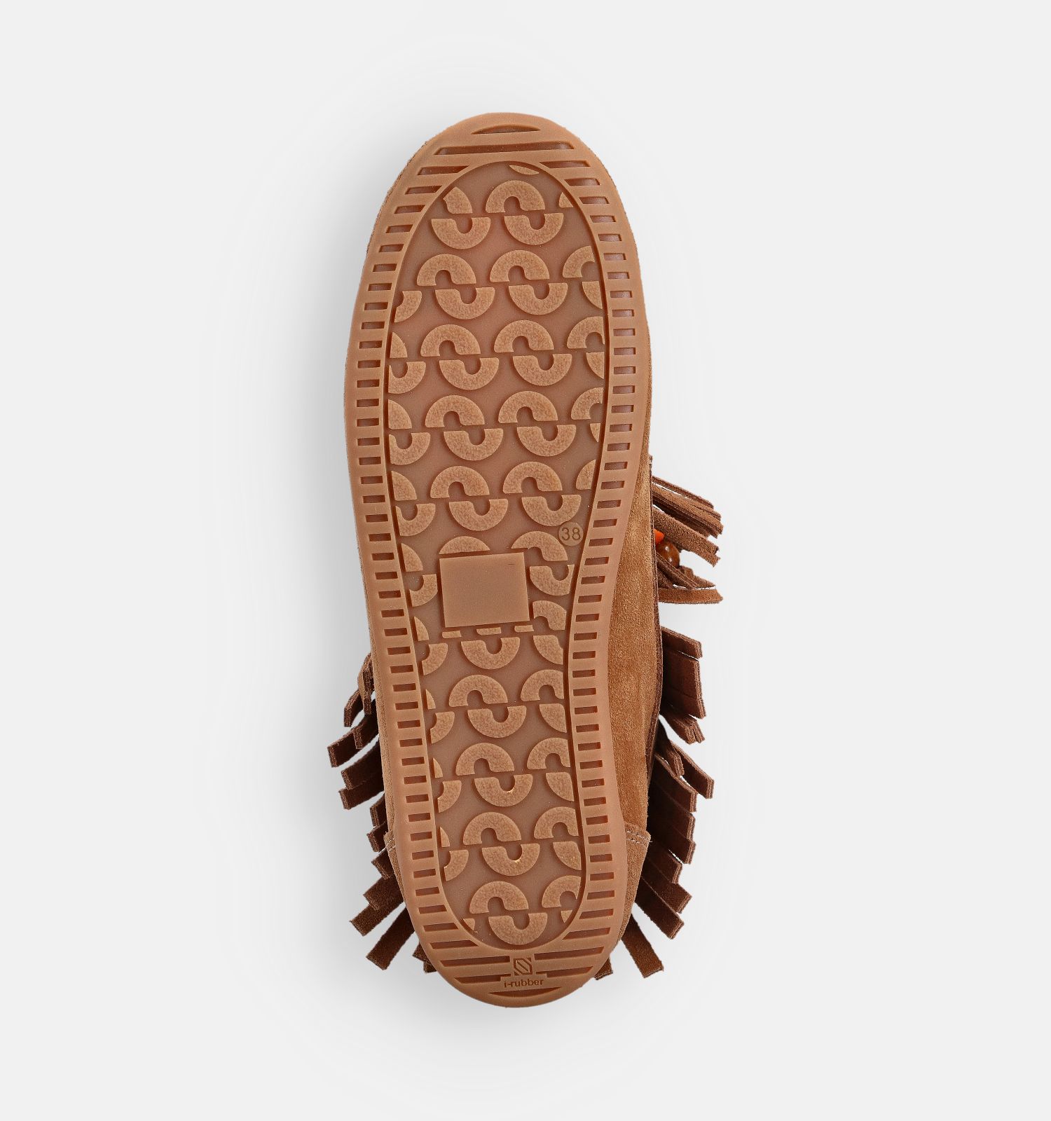 Deze cognac zomerschoenen uit suède hebben een reliëfpatroon onderaan de rubberen zolen voor extra grip. Dit laag uitgesneden Tango model houdt de enkels fris – een welkom voordeel op warme dagen. De verstevigde stiknaden zijn opvallend maar esthetisch, en maken de bootschoenenlook helemaal af.