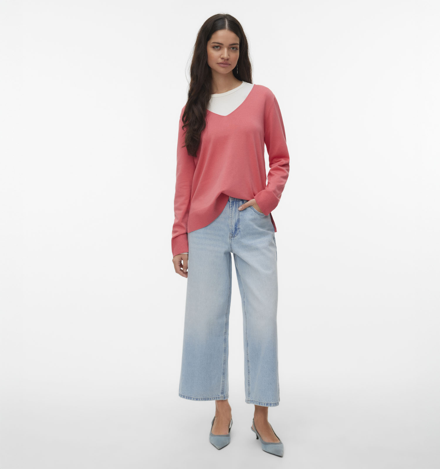 Een andere trendy combinatie is deze trui over een jurk. Trek je favoriete jurkje aan en doe vervolgens een fijne broeksriem op de hoogte waar jij deze Vero Moda trui wilt laten eindigen. Dat is een kwestie van smaak: dat kan in je taille zijn, net boven de heupen of ergens daartussen. De onderkant van de Vero Moda trui stop je vervolgens achter de riem, en de bovenkant blouse je zo op. Het resultaat? Jij ziet er extra stylish uit!