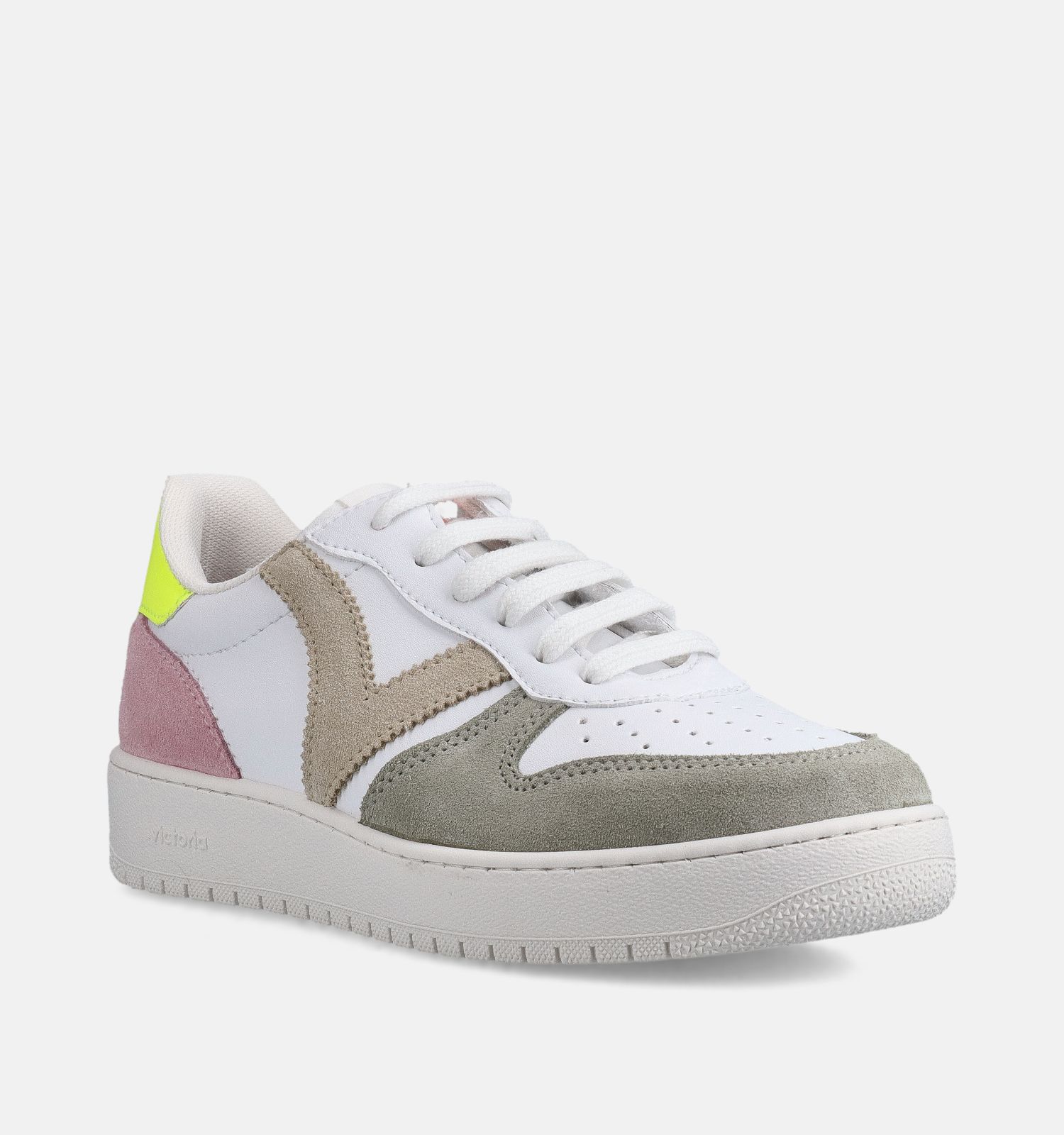Colorblock sneakers, zoals dit exemplaar voor dames, zijn een leuke twist op klassieke sneakers. In plaats van één effen kleur over de hele sneaker, sieren op deze Victoria sneakers verschillende contrasterende kleurvlakken. Deze trend straalt fashion, creativiteit en vrolijkheid uit.