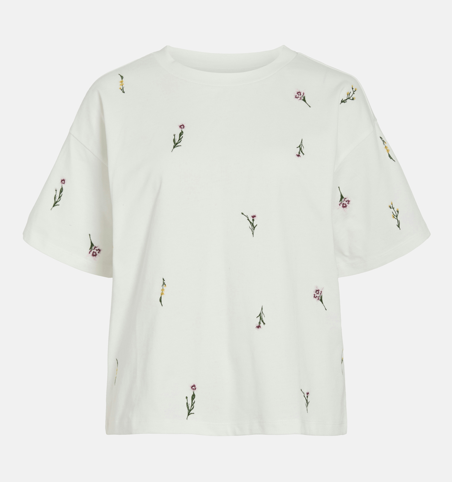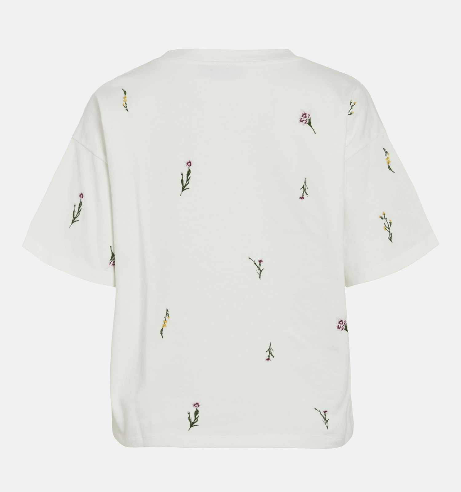 Deze T-shirt heeft korte mouwen, waardoor je het hele jaar door van dit fijne exemplaar kan genieten! Ook interessant om te weten: dit Vila-model valt recht qua pasvorm. Het staat dus ieder lichaamstype prachtig. Deze witte dames-T-shirt heeft een mooie ronde hals die je eventueel prachtig kan accentueren met je favoriete kettingen.