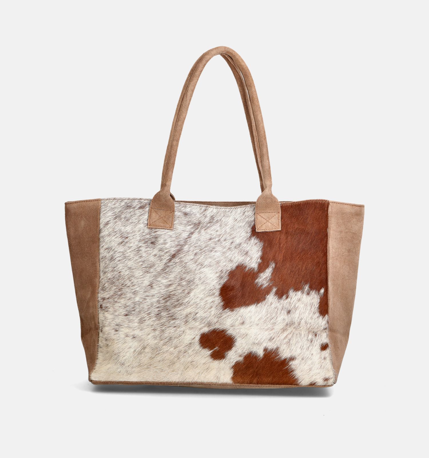 Via Limone Cow Print Ecru/Beige Shoppertas