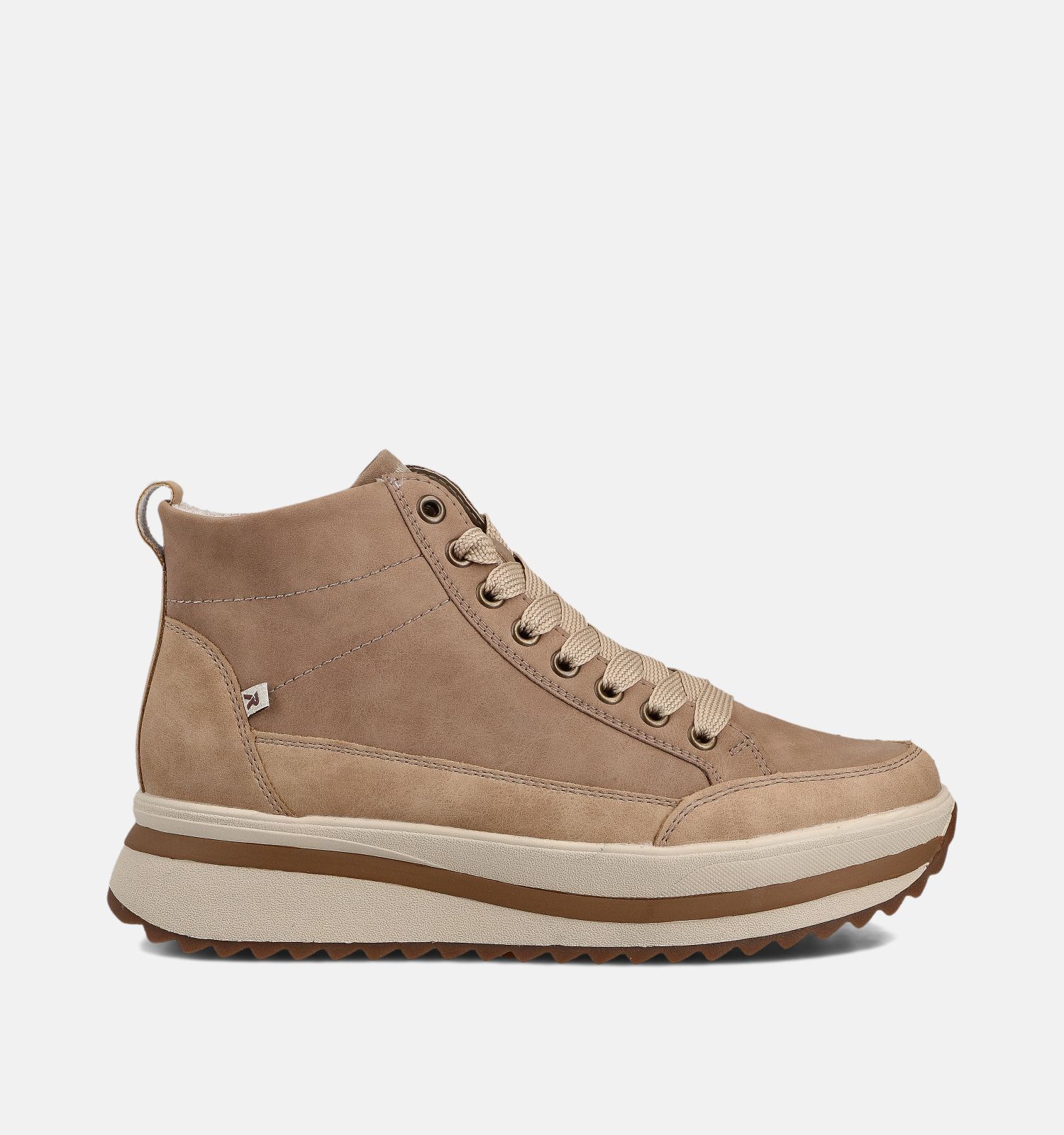 Deze sneakers in de kleur beige zijn vervaardigd uit sterk kunstleer, met zacht stof aan de binnenkant. Deze materialen hebben een extra licht gewicht, een antidotum tegen dat herkenbare gevoel dat jouw voeten na een tijd zwaar beginnen aan te voelen. De ergonomische pasvorm van deze Rieker damessneakers houdt ook rekening met het feit dat alle voeten licht opzwellen tegen het einde van de dag. Zo ervaar je de hele dag door optimaal comfort! Deze Rieker sneakers voor dames hebben een rits & vetersluiting.