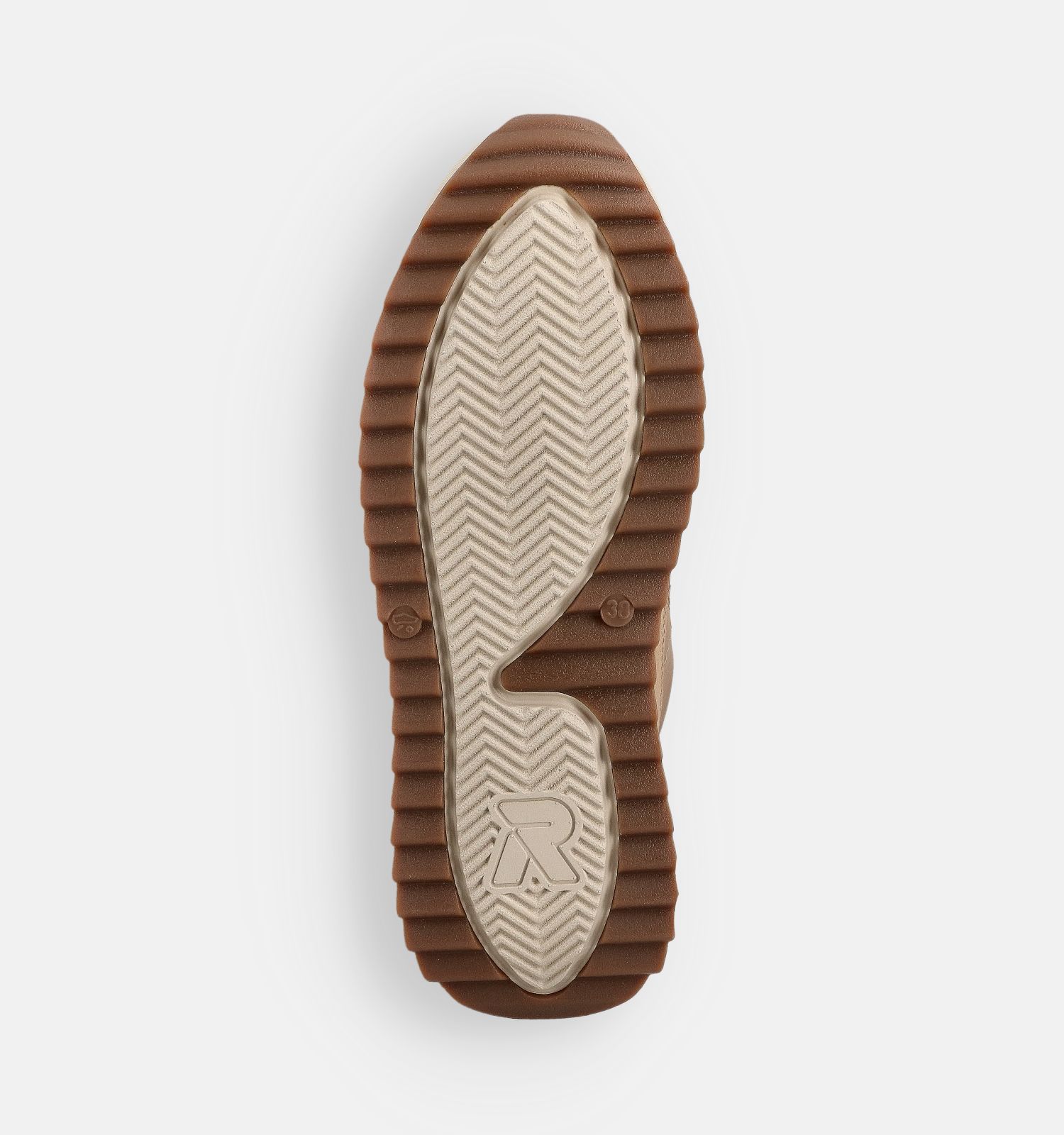 Deze Rieker sneakers voor dames zijn anti-stress schoenen. Dit betekent dat deze beige sneakers optimaal comfort bieden, de hele dag door. De schokdempende schoenzolen verkleinen de wandelimpact en verspreiden de druk over de hele zool heen.