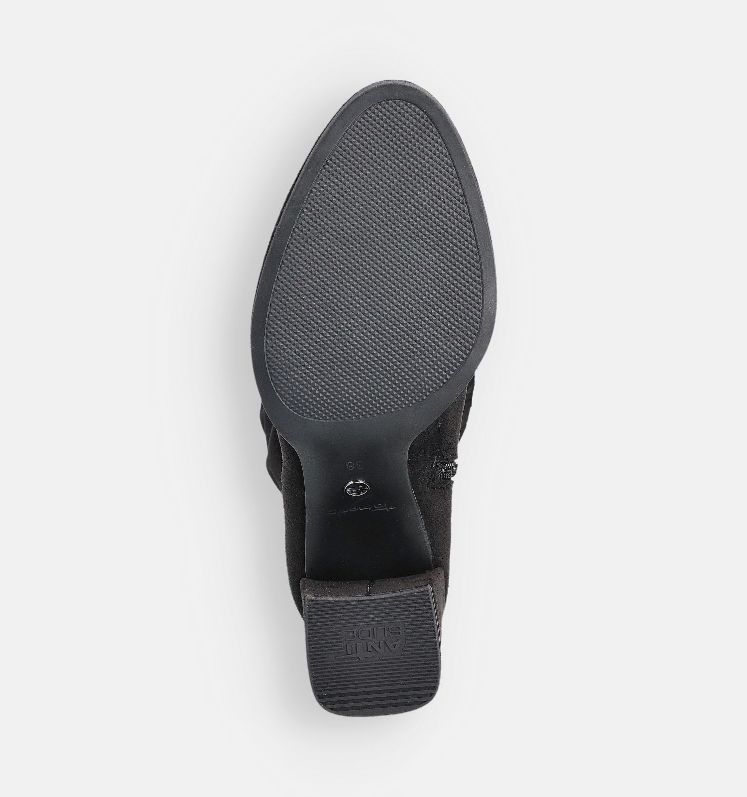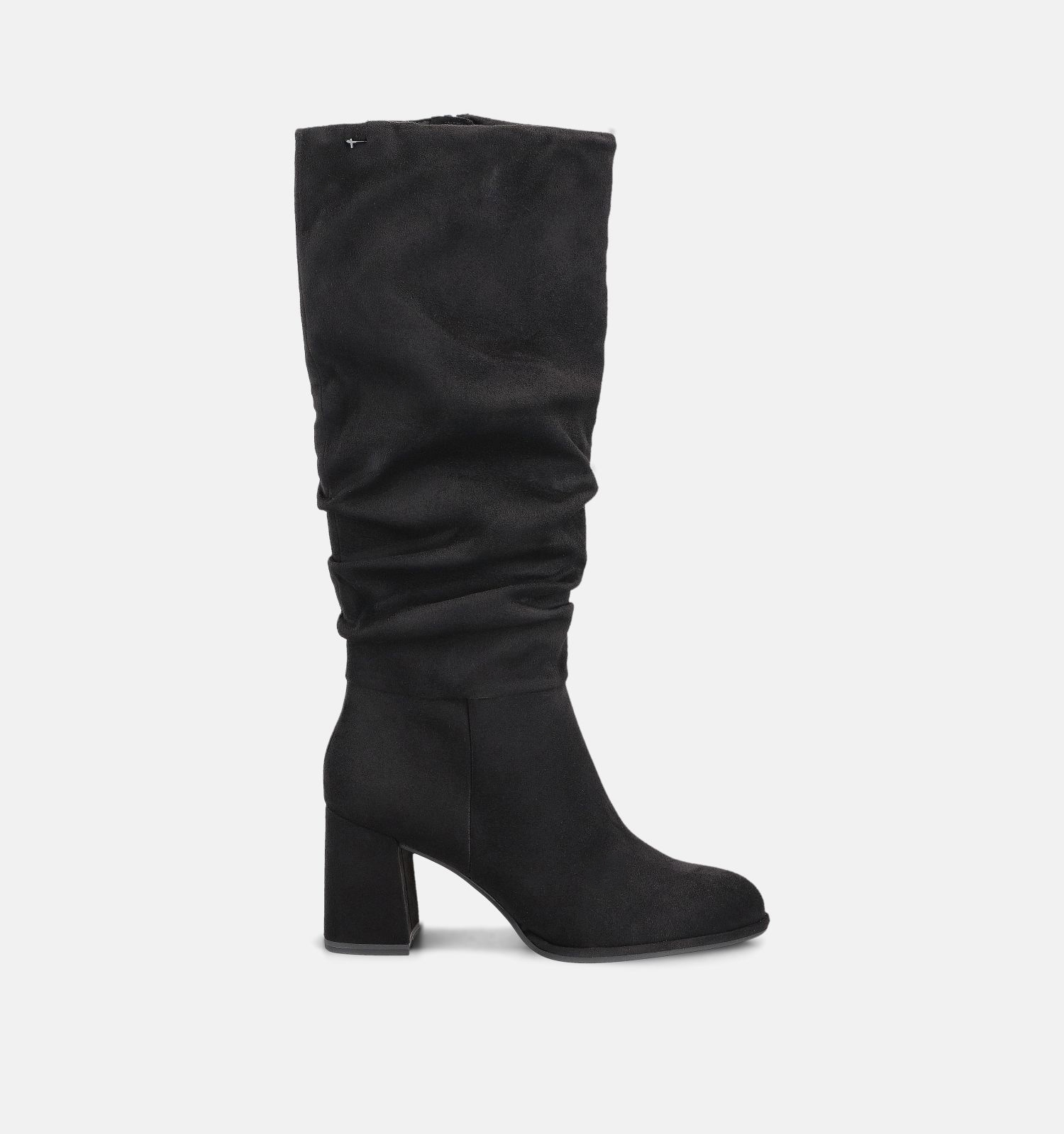 Goed om te weten: deze zwarte blokhaklaarzen van Tamaris hebben een schachthoogte van ongeveer 40 cm. De kuitbreedte van dit hoge model is .