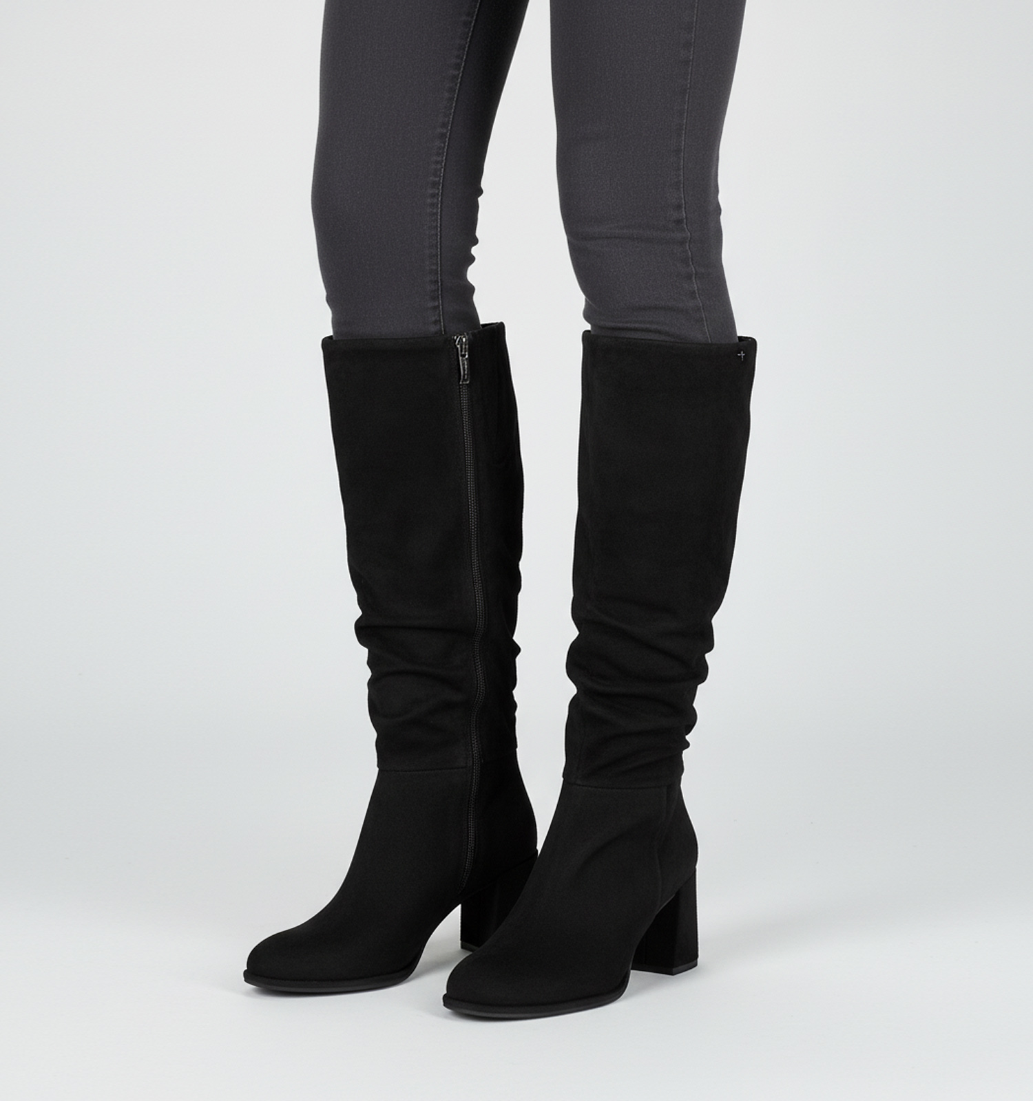 Style deze Tamaris lange laarzen met hoge blokhak met een broek en blazer voor een professionele look, perfect voor op kantoor of business evenementen. Combineer deze lange laarzen met een jurk, en eventueel een panty tijdens de herfst en winter, voor een meer casual-chic look.