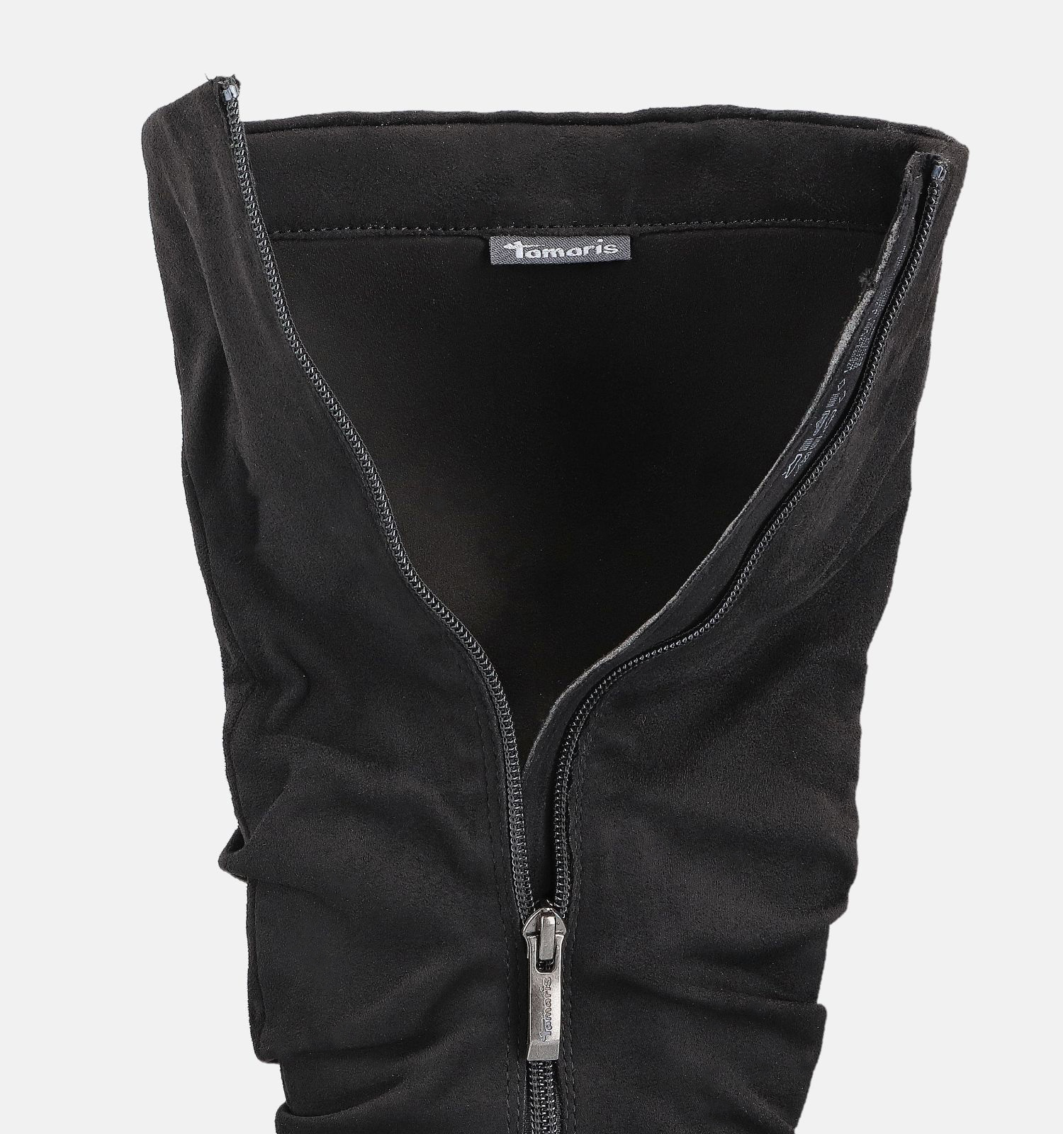 Niets is vrouwelijker dan lange laarzen met een hoge hak! Deze zwarte laarzen van het merk Tamaris zullen ongetwijfeld een permanente plaats in je hart én je schoenenkast veroveren. Daar zijn we zeker van! Dit Tamaris model uit zwarte stof verlengt jouw benen, letterlijk en figuurlijk, wat zeer chic, elegant en vrouwelijk oogt. Je outfit ziet er meteen luxueus uit, en jij extra zelfverzekerd. Door deze Tamaris ritslaarzen met hoge hakken blijven de complimenten maar komen.