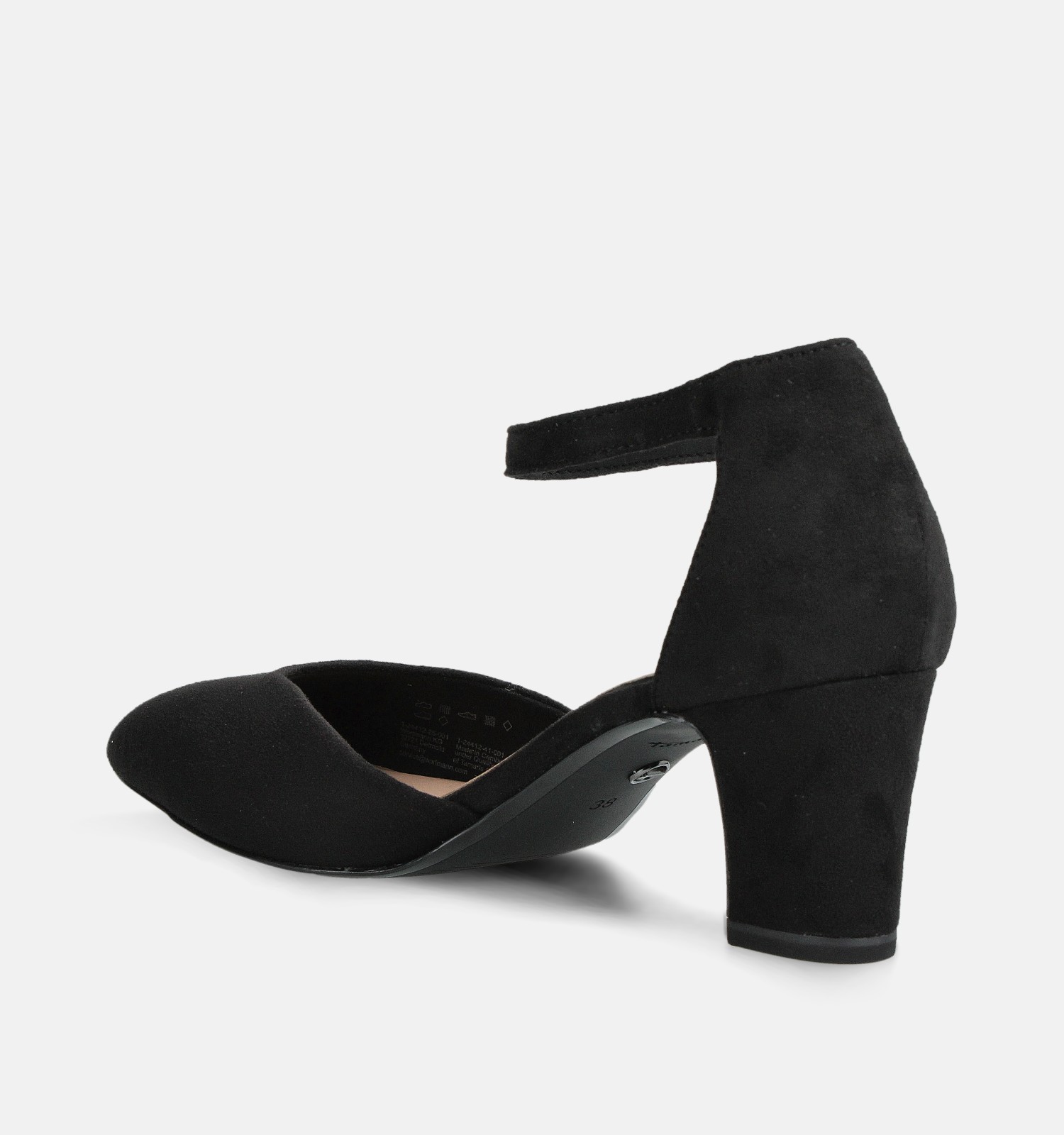 Deze blokhakpumps uit stof zijn een leuke keuze voor zowel casual-chic als formelere gelegenheden. Trek deze zwarte hakken aan voor een avond op restaurant, het volgende familiefeest of dat trouwfeest waar je al zo lang naar uitkijkt! Pumps met bandje(s), zoals dit exemplaar van Tamaris, zijn meestal comfortabeler dan klassieke pumps, al raden we wel aan om ze al eens een half uurtje in te lopen (binnenshuis) voor je ermee naar buiten gaat.
