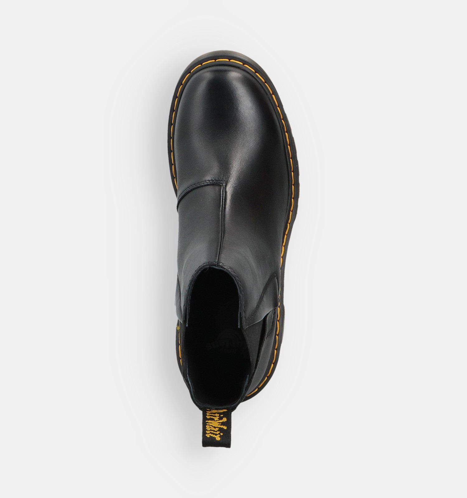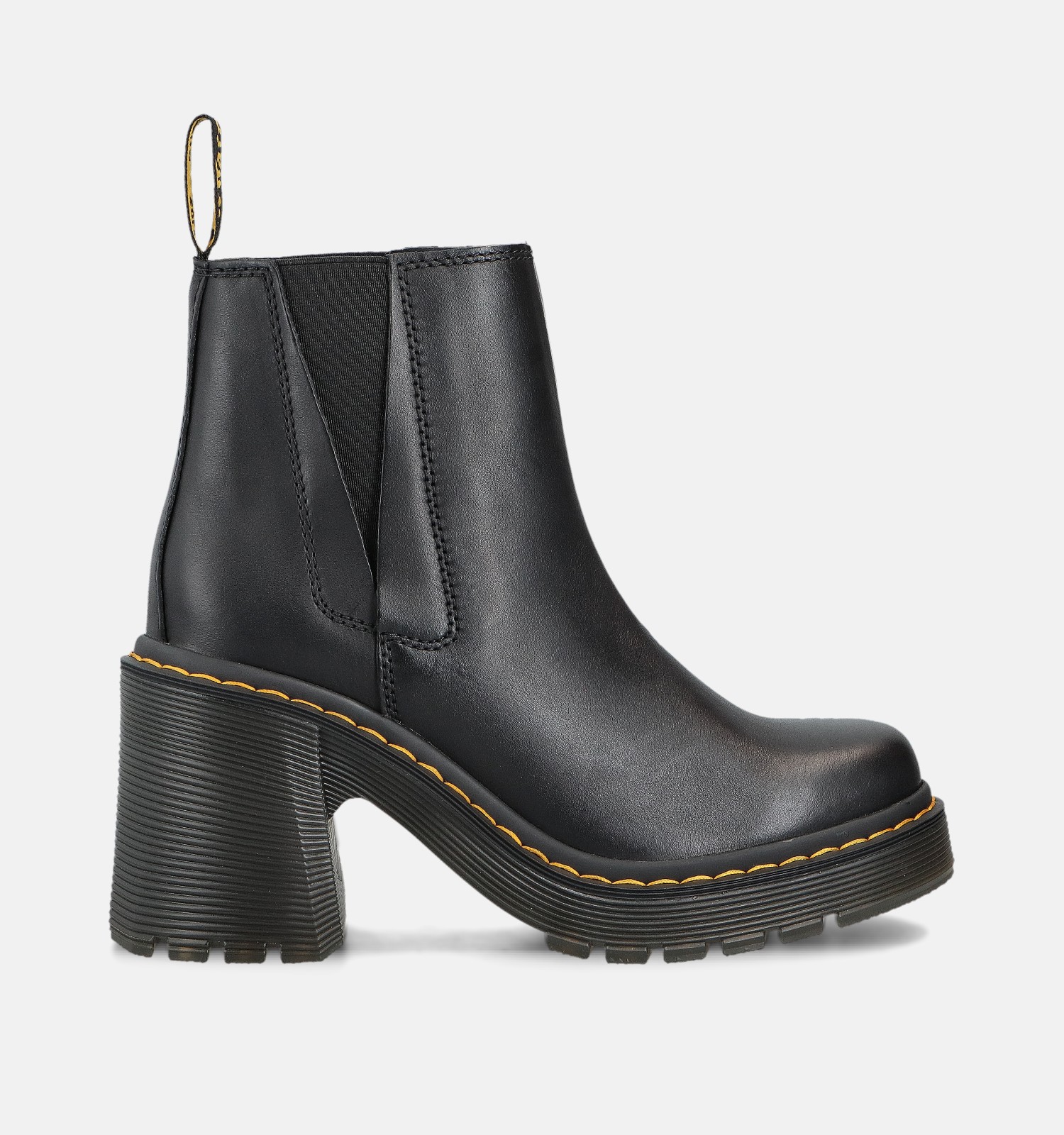 Deze zwarte enkellaarzen met elastiek geven een moderne toets aan alle damesoutfits. Deze Dr. Martens chelsea boots complementeren zowel geklede, formelere outfits als meer ontspannen looks, zoals je favoriete jeans. Het zwarte leer geeft deze chelsea boots een eigentijdse twist – perfect als je er goed en up-to-date wil uitzien zonder er te veel over na te denken. Deze Dr. Martens chelsea boots hebben een voetbreedte F - Normale voet. Die breedte is ideaal voor jou als het leer jouw voeten zacht omsluit, zonder te spannen of te knellen.
