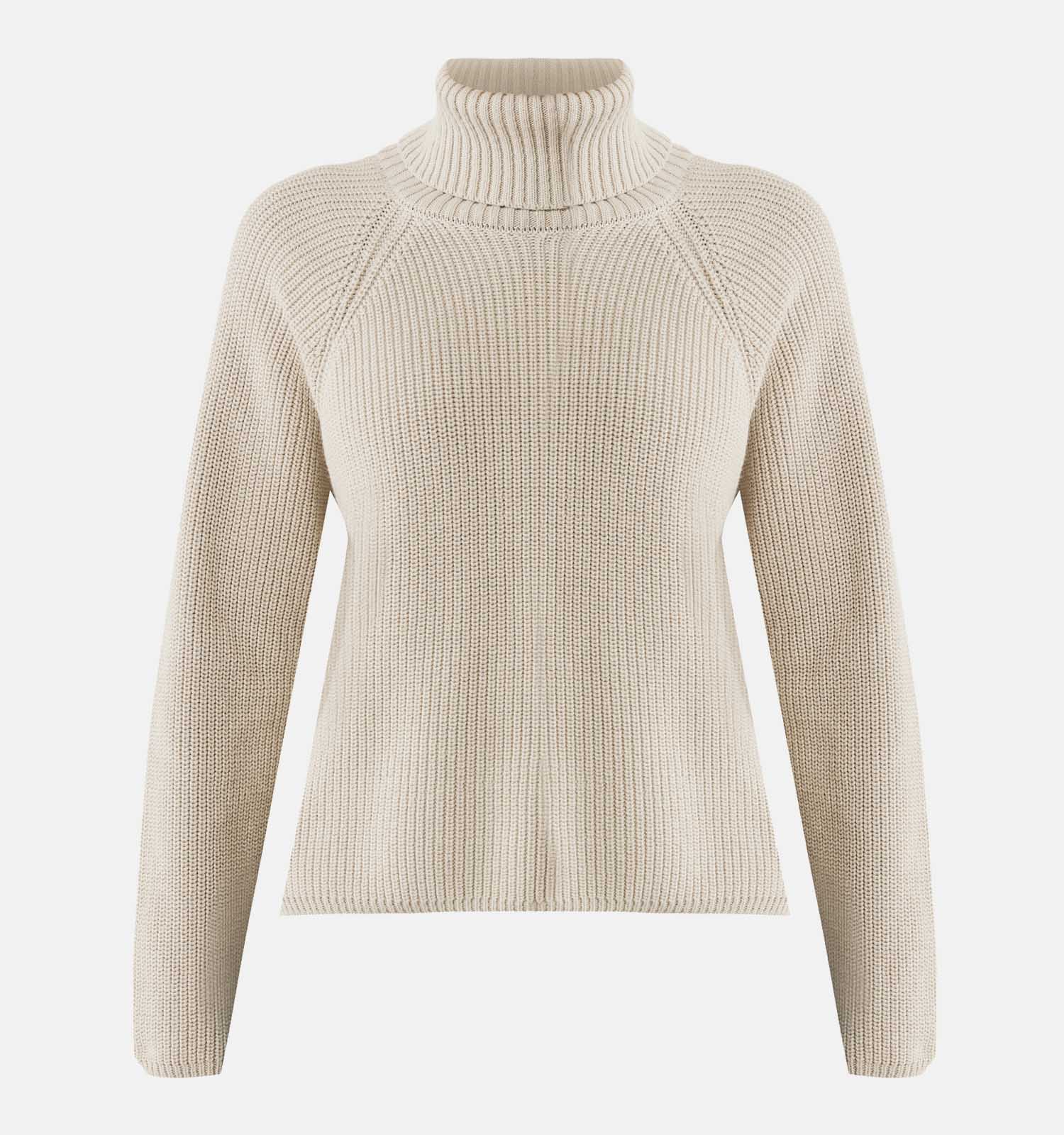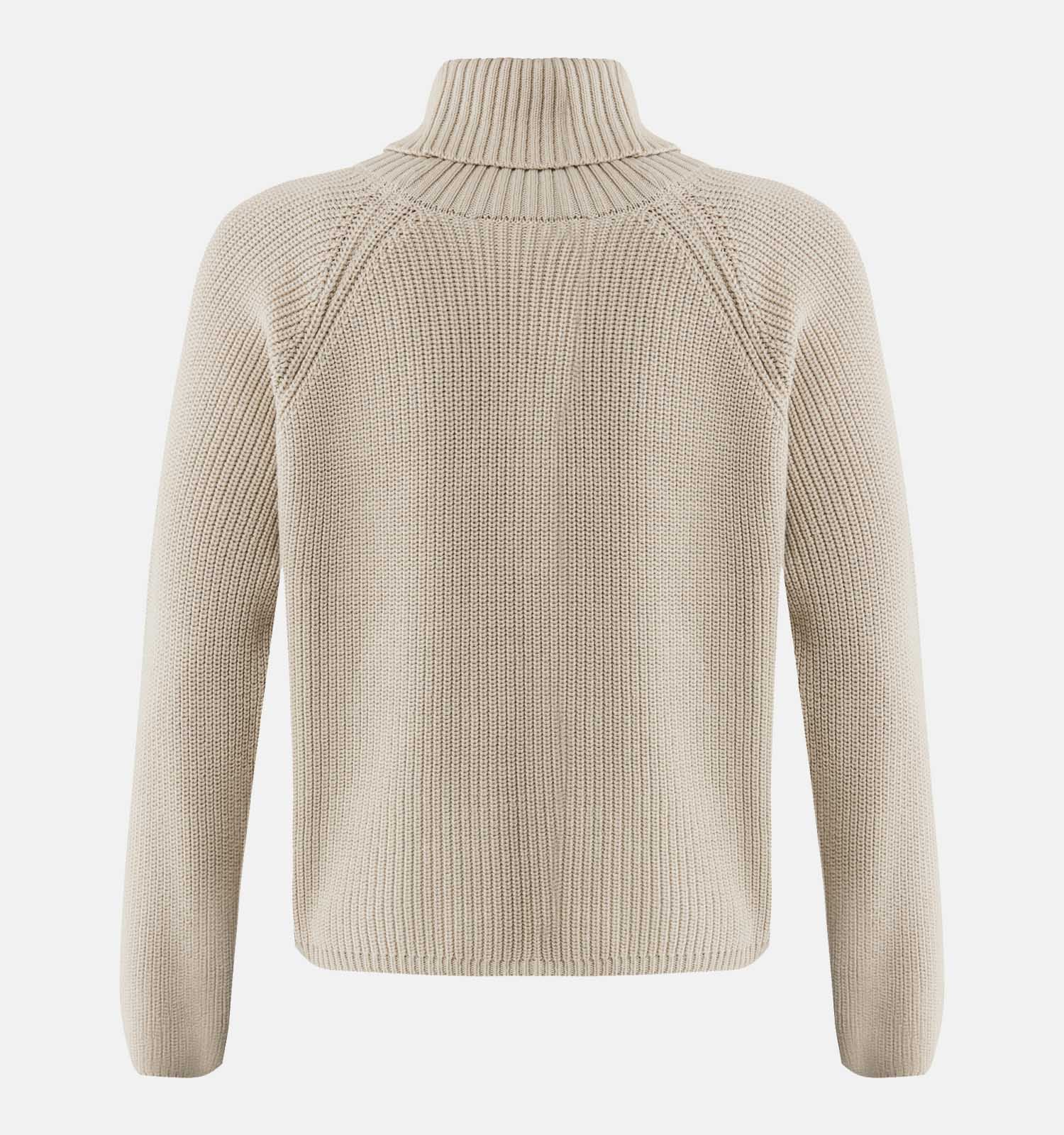 Deze damestrui in de kleur beige heeft een rolkraag, en lange mouwen. De truilengte is 47 cm bij maat .