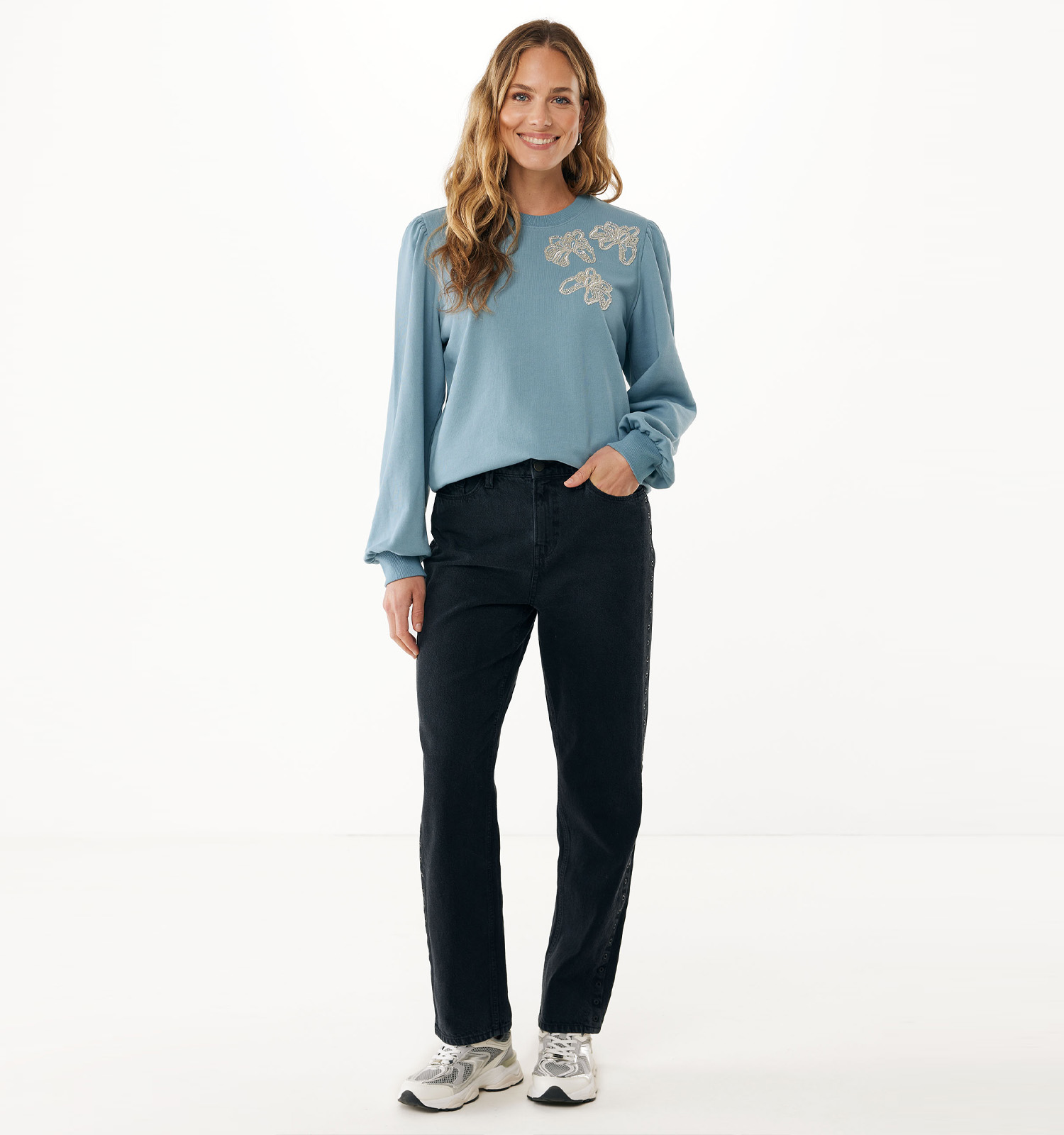 Deze Mexx trui met printprint is de perfecte aanvulling voor jouw kleerkast. Style deze zachte trui met jouw favoriete jeansbroek of jeansshort voor een stijlvolle, French-chic look. Deze blauwe trui staat ook mooi op een geklede(re) broek, wijde broek of chino, al raden wij wel aan om broeken met een (drukke) print te vermijden. Deze Mexx trui komt het best tot zijn recht in combinatie met monochrome onderstukken. Laat deze blauwe trui met print de eyecatcher zijn!