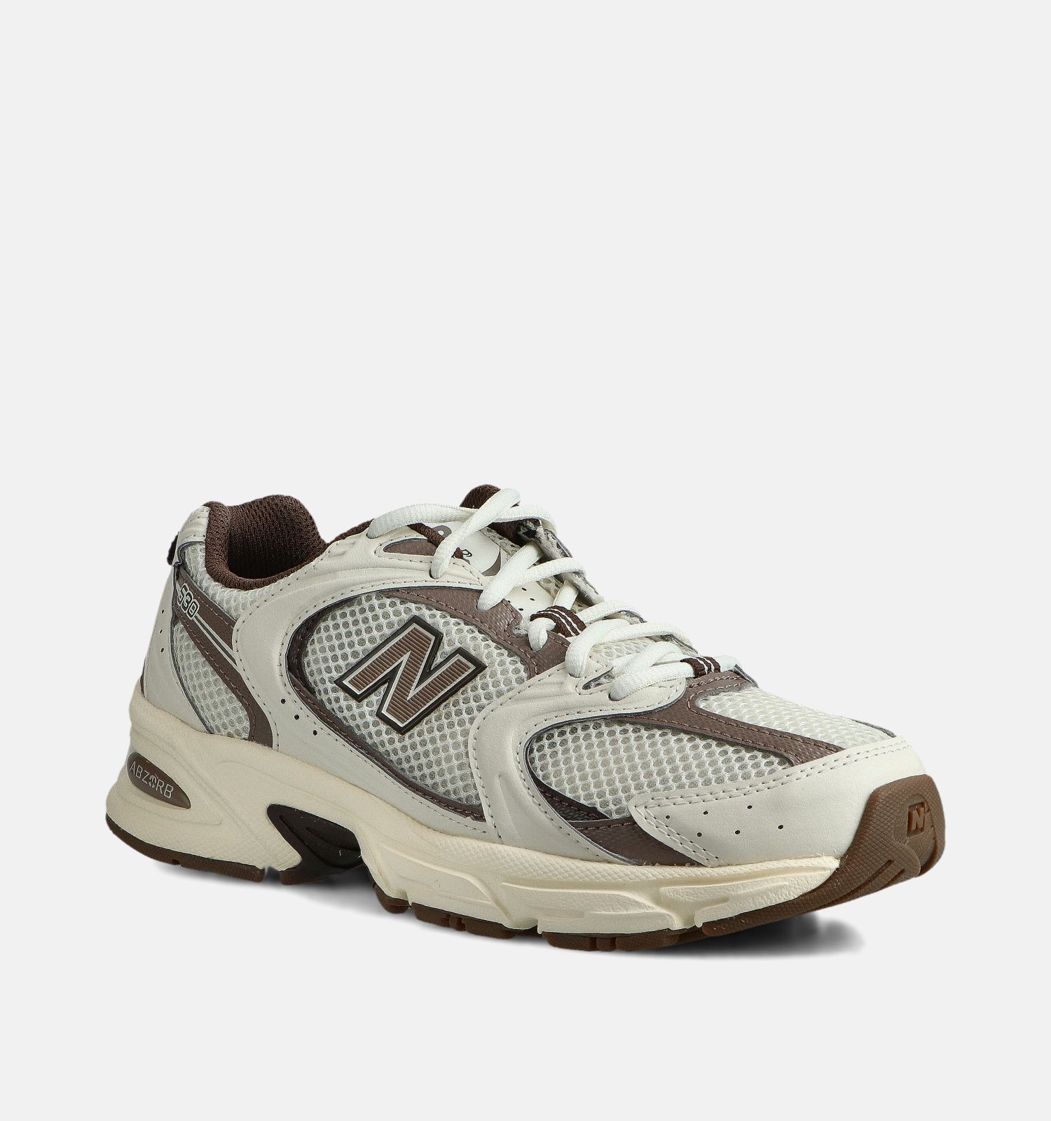 Deze beige sneakers van New Balance zijn vervaardigd uit kunstleer, stof, met binnenin een afwerking van stof. Behandel deze New Balance 530 damessneakers met een onderhoudsproduct voordat je ze aantrekt. Zo blijven deze casual sneakers zo lang mogelijk in topconditie.