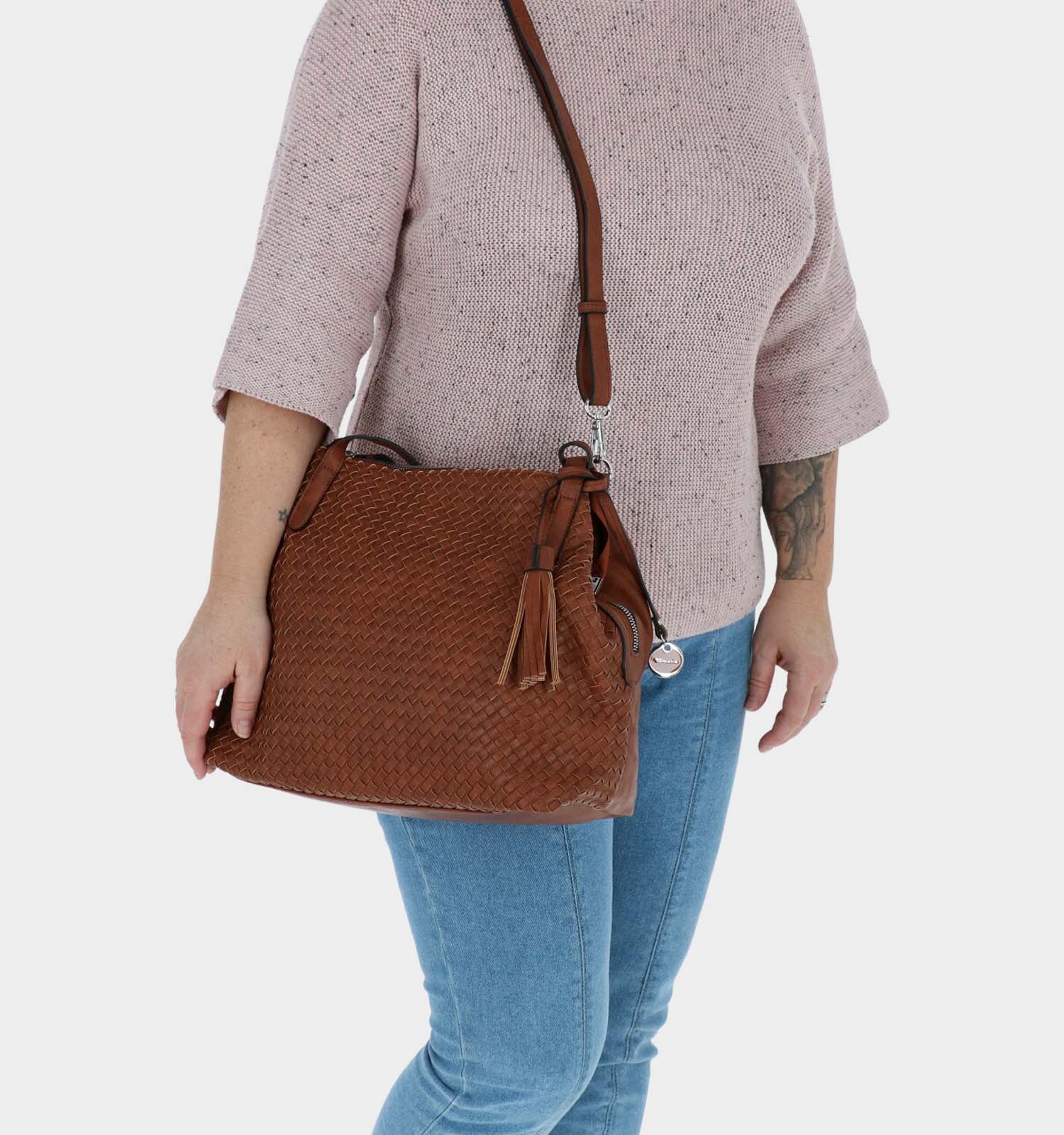 Deze prachtige cognac schoudertas van Tamaris is een echte must-have.