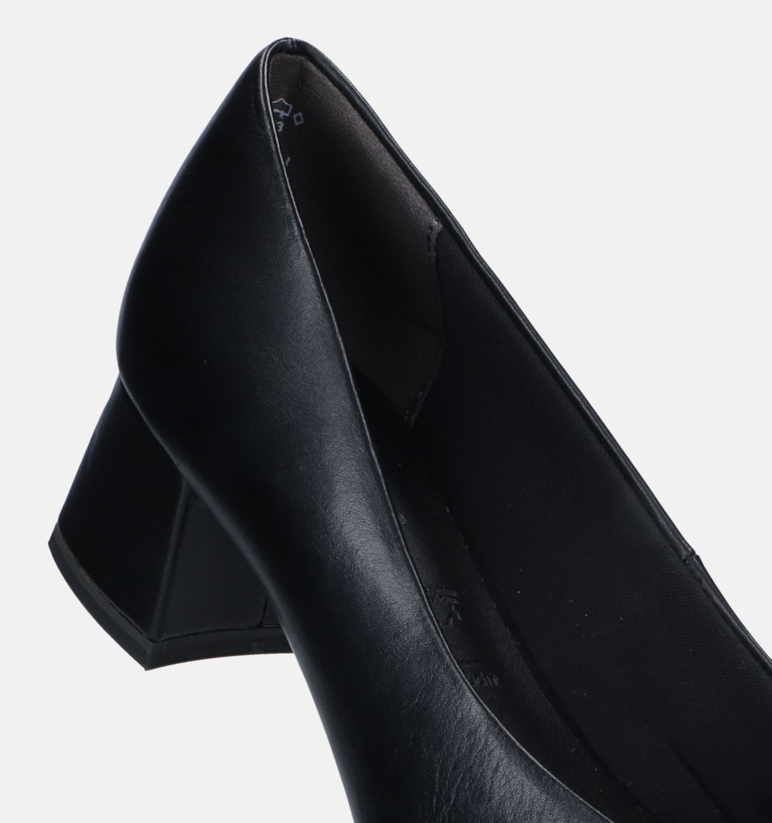Deze pump van Tamaris is vervaardigd uit leer en binnenin afgewerkt in stof.