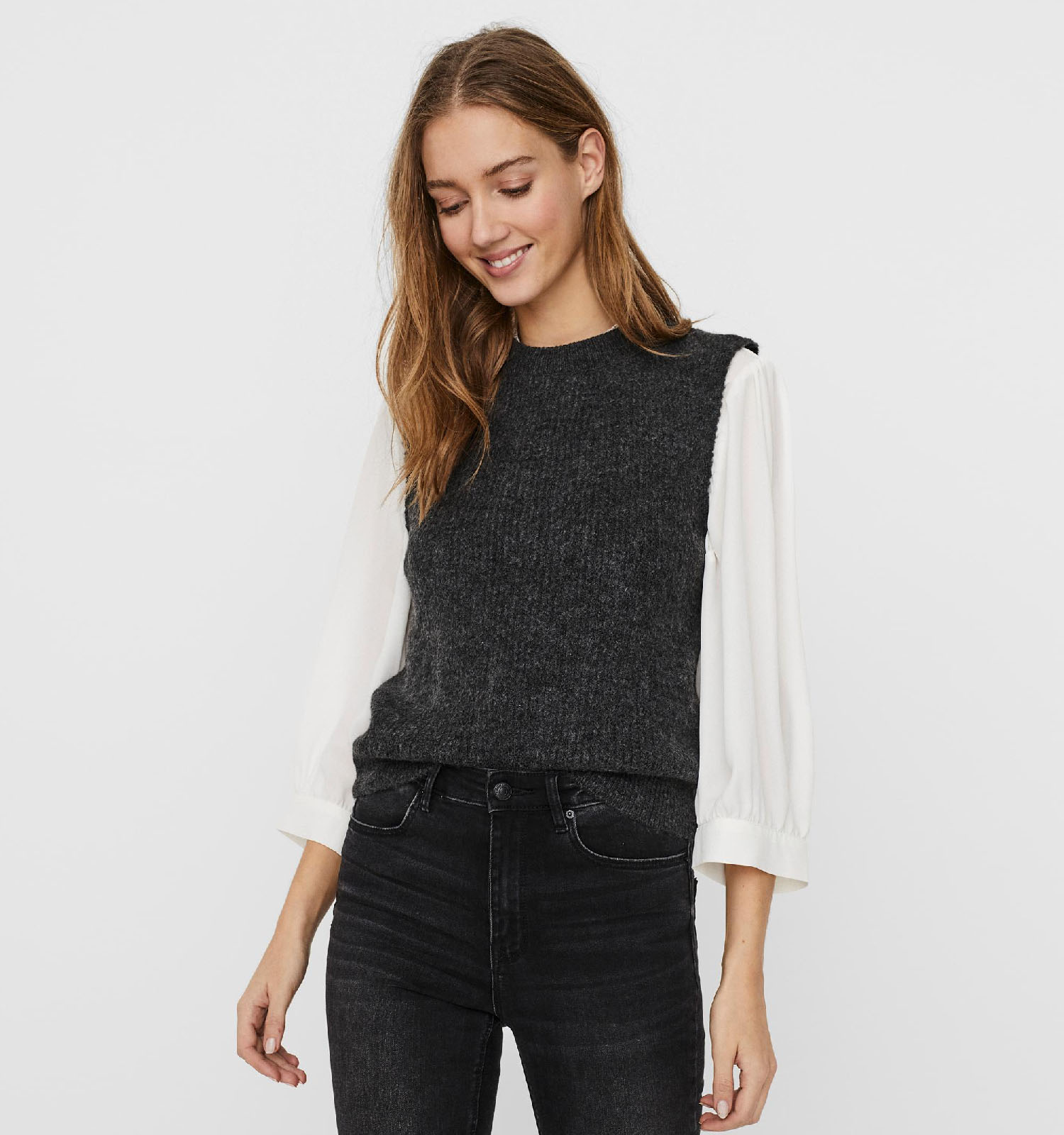 Alle grote modemagazines zijn het met elkaar eens: debardeurs zijn dé trend van dit jaar. Deze grijze debardeur van Vero Moda is dus essentieel voor de garderobe van elke moderne vrouw. Stylen is ook helemaal niet zo moeilijk als het lijkt. Draag ze bovenop jouw favoriete witte blouse of hemd; een oversized hemdjurk; een strakkere t-shirt met lange mouwen of gewoonweg zo, zonder iets van top eronder! Onze tip is om gewoon wat looks te proberen, je zal zo zien hoe verrassend makkelijk deze Vero Moda debardeur te combineren valt. Als kers op de taart, kan je de outfit afwerken met een leuke, grijze handtas.