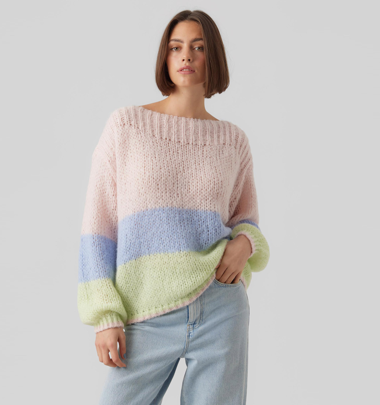 Deze Vero Moda trui in de kleur roze heeft een boothals, en lange mouwen. De truilengte is normaal cm bij maat S.