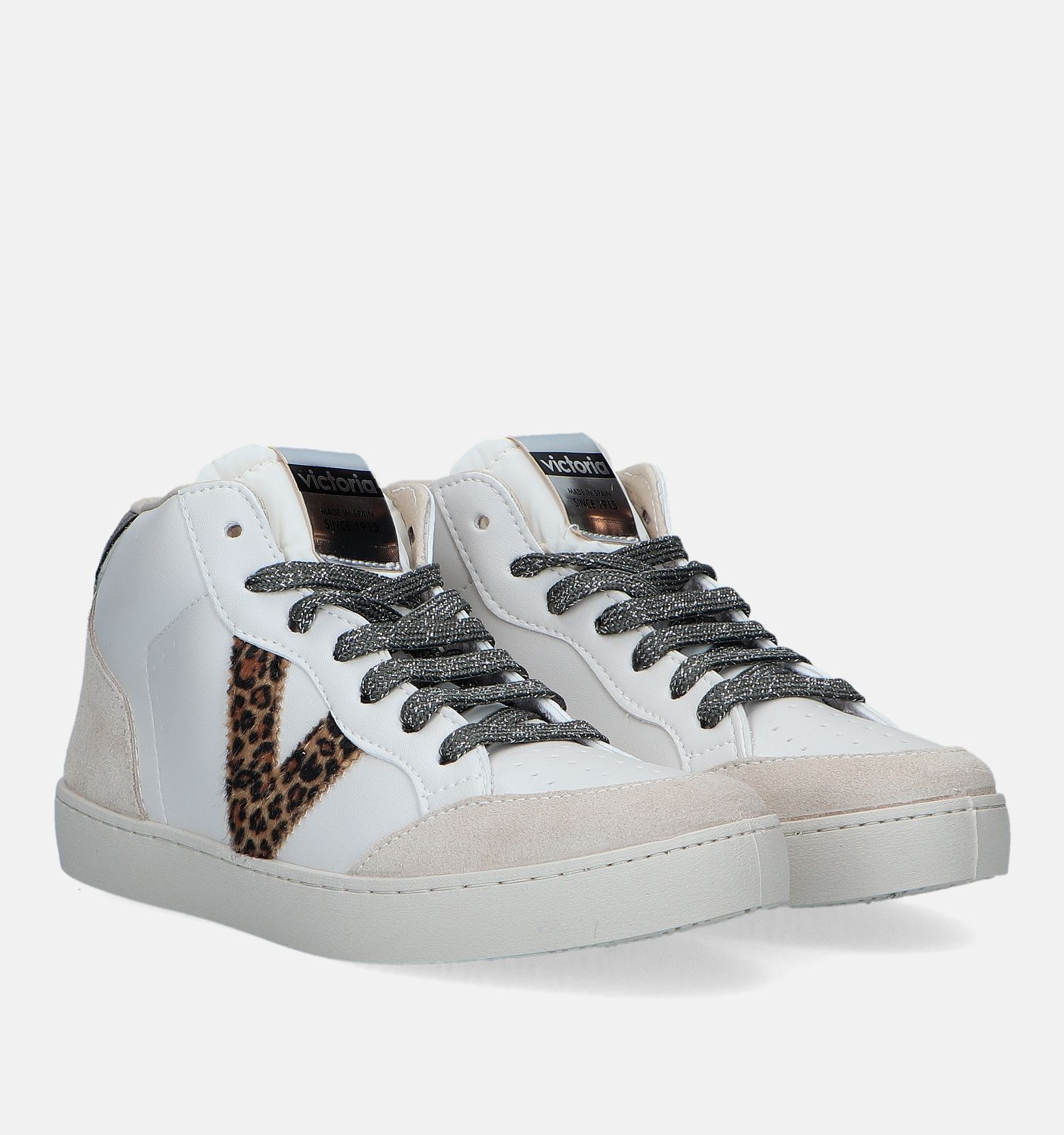 Dit Victoria model heeft een moderne look, vervaardigd uit kunstleer, suède. Binnenin zijn deze hoge sneakers voor dames afgewerkt met zacht stof. Hou de witte kleur het langst mooi door deze high-top sneakers voor dames te behandelen met een onderhoudsproduct geschikt voor kunstleer, suède.