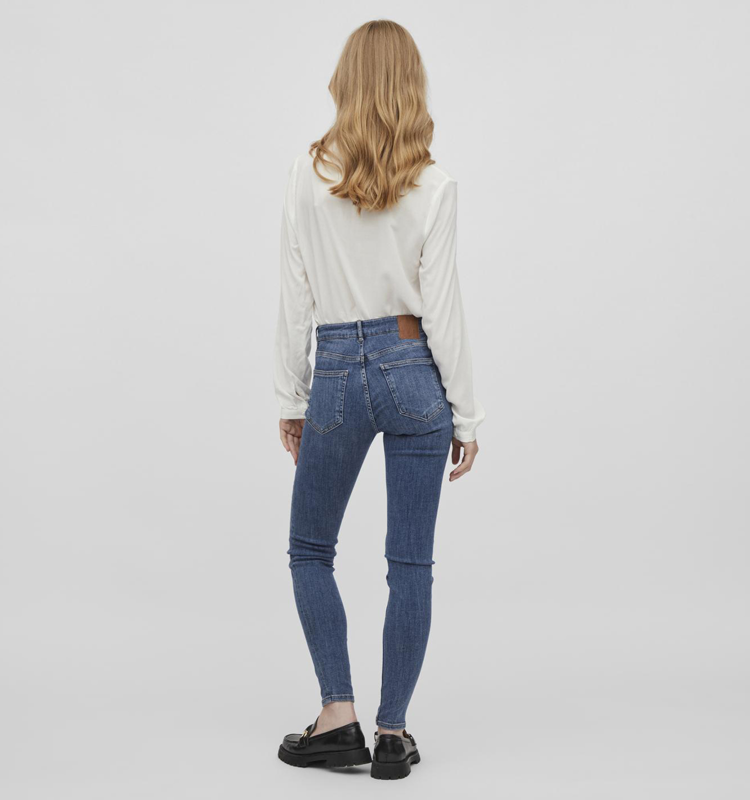 Deze Vila denim heeft een hoge taille taille en valt recht qua pasvorm, wat het een universeel flatterend model maakt. Deze blauwe damesjeans zit bovendien extra comfortabel door de materialenmix (elastaan, katoen, polyester) en is daardoor dé perfecte broek voor op kantoor of om te dragen in jouw vrije tijd.