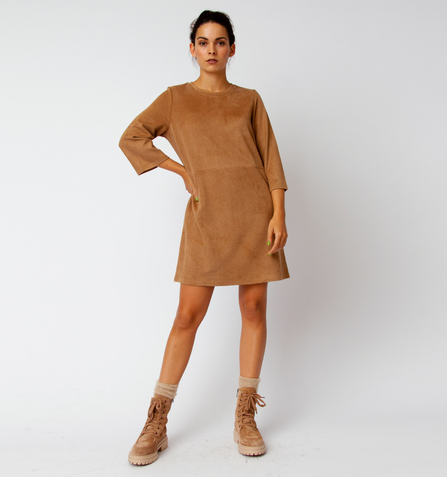 In de warme zomermaanden dragen wij het liefst een frisse, leuke en trendy jurk! Jij ook? Dit cognac exemplaar van het merk Vila is de perfecte keuze voor dat “blote benen weer” en vervult alle verwachtingen. Het materiaal (elastaan, polyester) voelt licht en zacht op de huid. De prachtige, cognac kleur is niet alleen hip op dit moment, ze flatteert iedereen. Dit model van Vila heeft halflange mouwen.