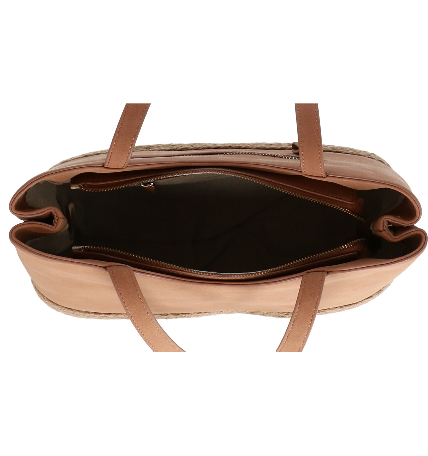 Je kan deze cognac shopper handtas van Woomen afsluiten door middel van een rits zodat de inhoud van je tas beschermt is.