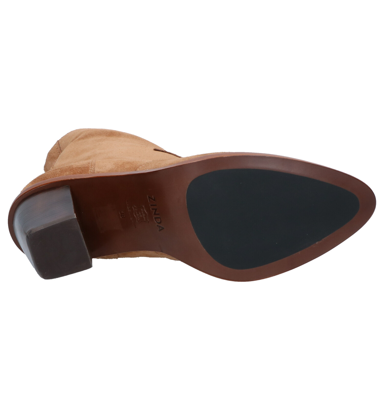 Dit cognac Western laarsje van Zinda is vervaardigd uit daim en binnenin afgewerkt in leer.